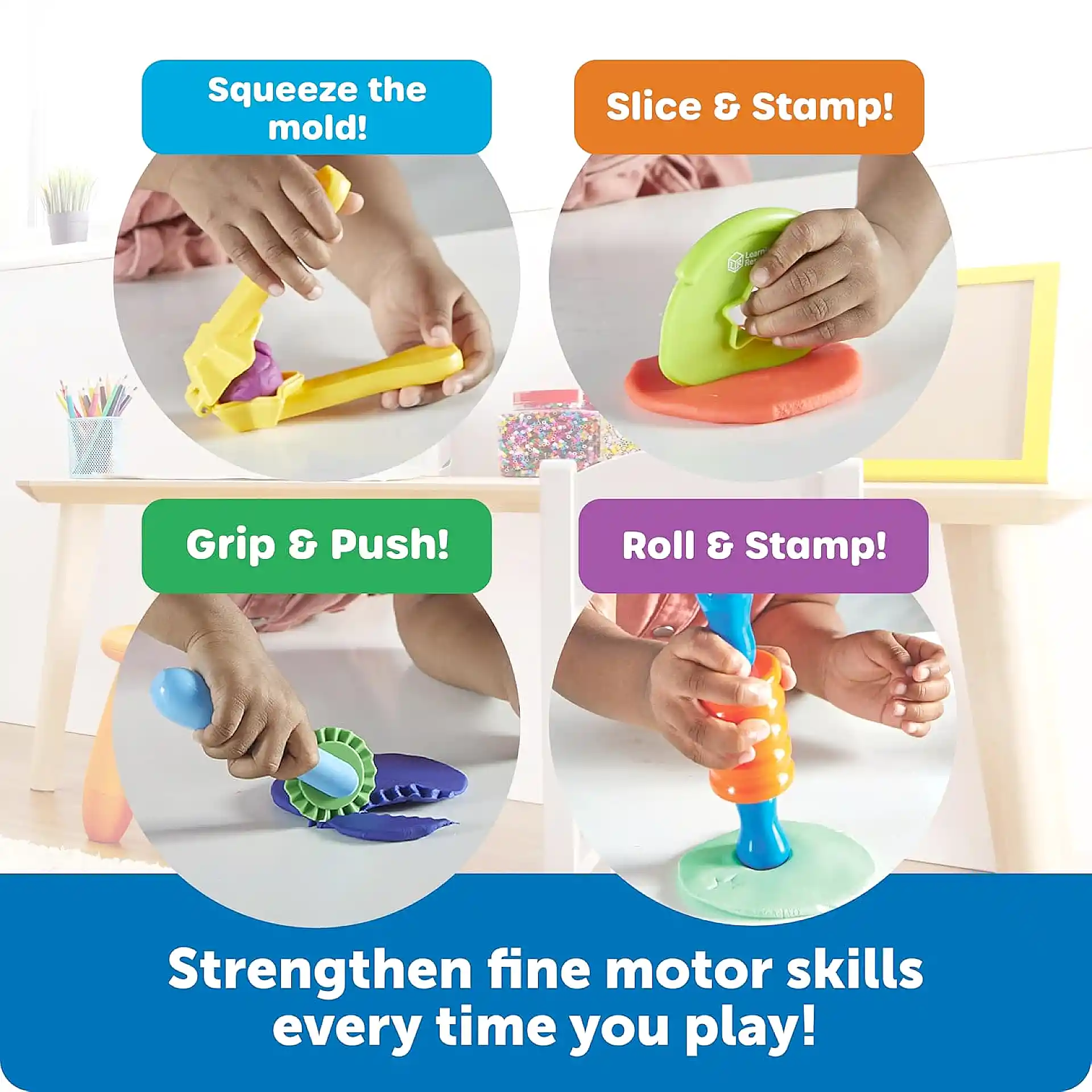 مجموعة Helping Hands هي أدوات حسّية مصممة خصيصًا لأيدي الأطفال، بتعطيهم تجربة ممتعة مليئة بالضغط، القص، التشكيل والاستكشاف 🎨
