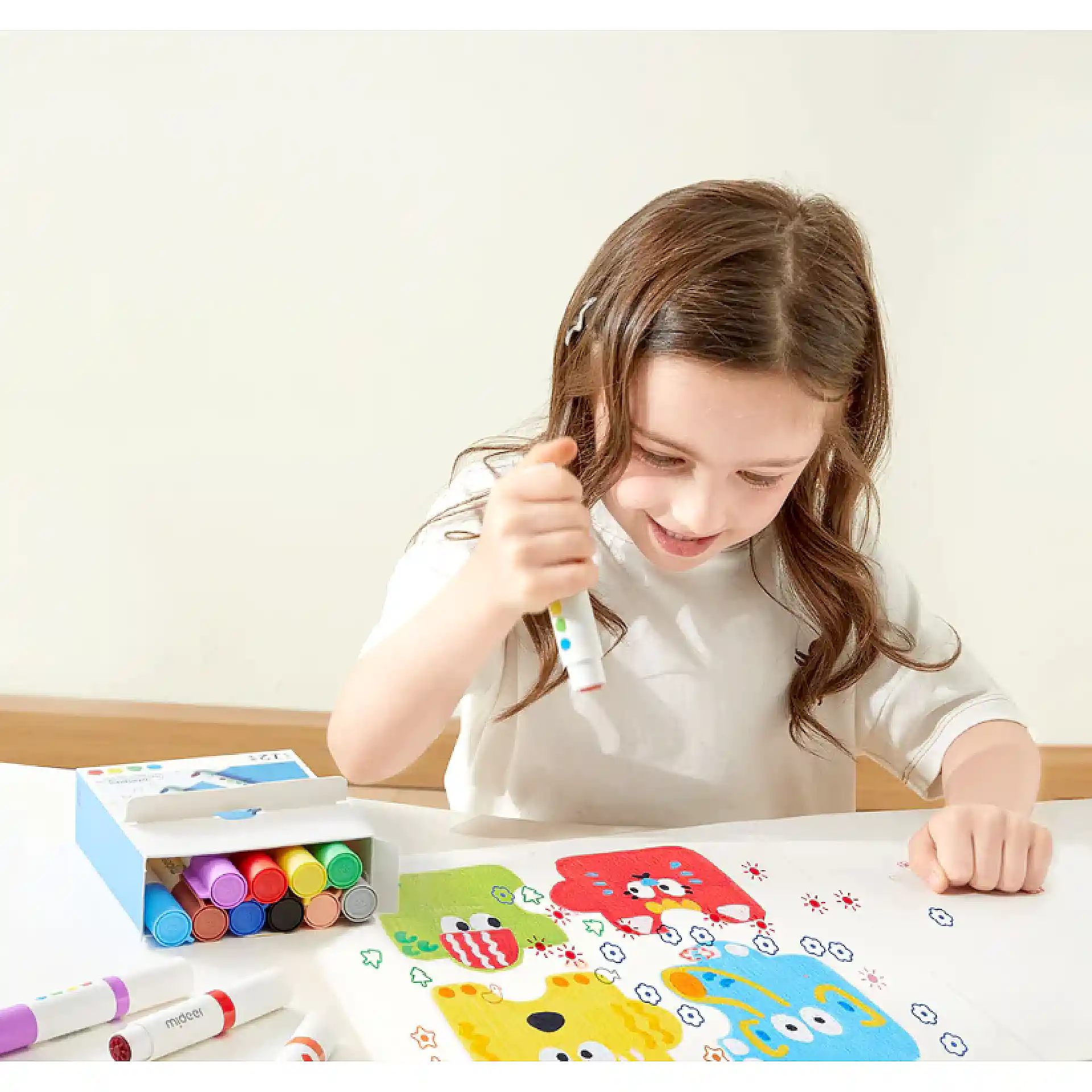 أقلام طباعة قابلة للغسل من Mideer تجمع بين الرسم والطباعة في نفس الوقت، حيث يمكن للطفل التلوين أو استخدام الطرف الخاص للطباعة على الورق.