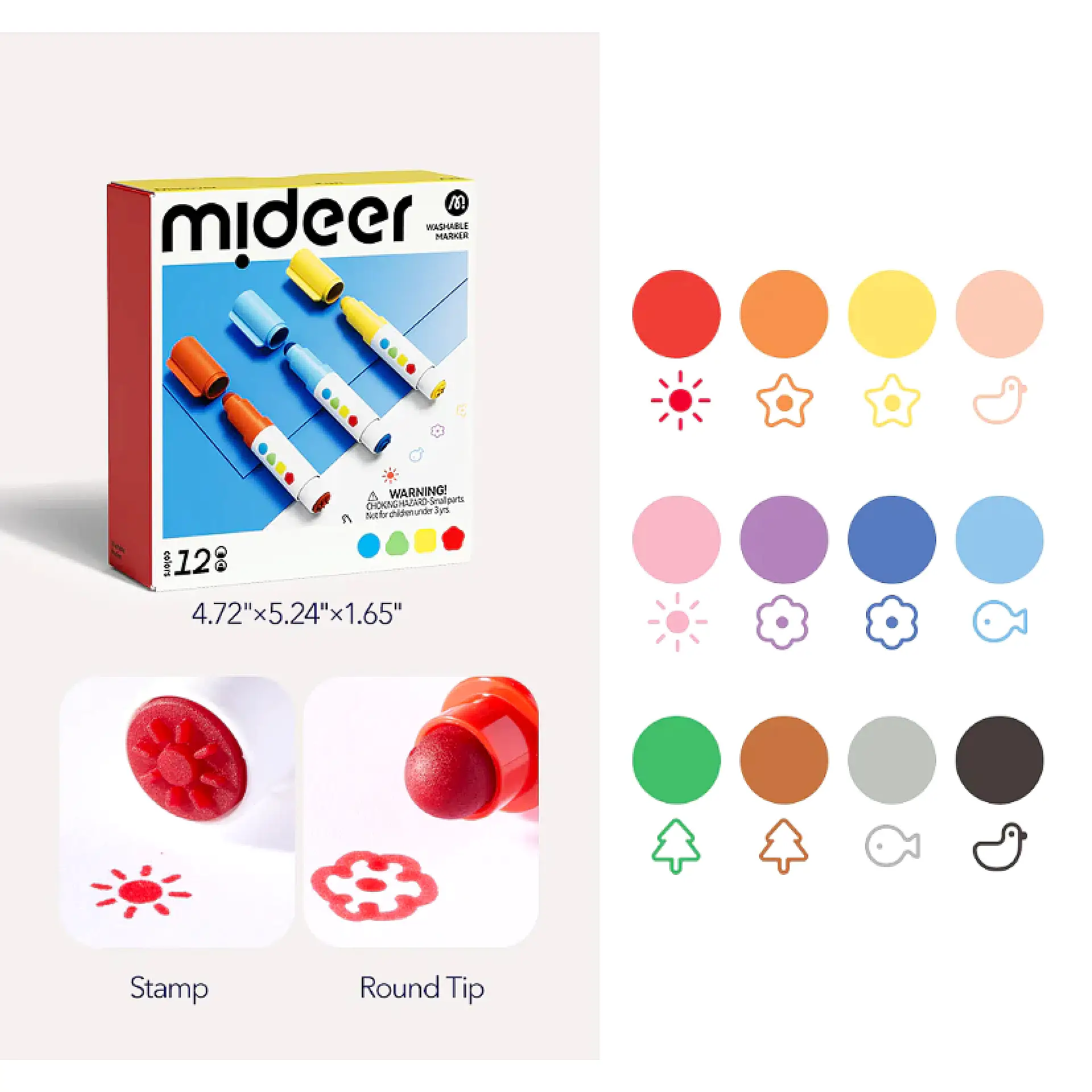 أقلام طباعة قابلة للغسل Mideer – 12 لون للأطفال