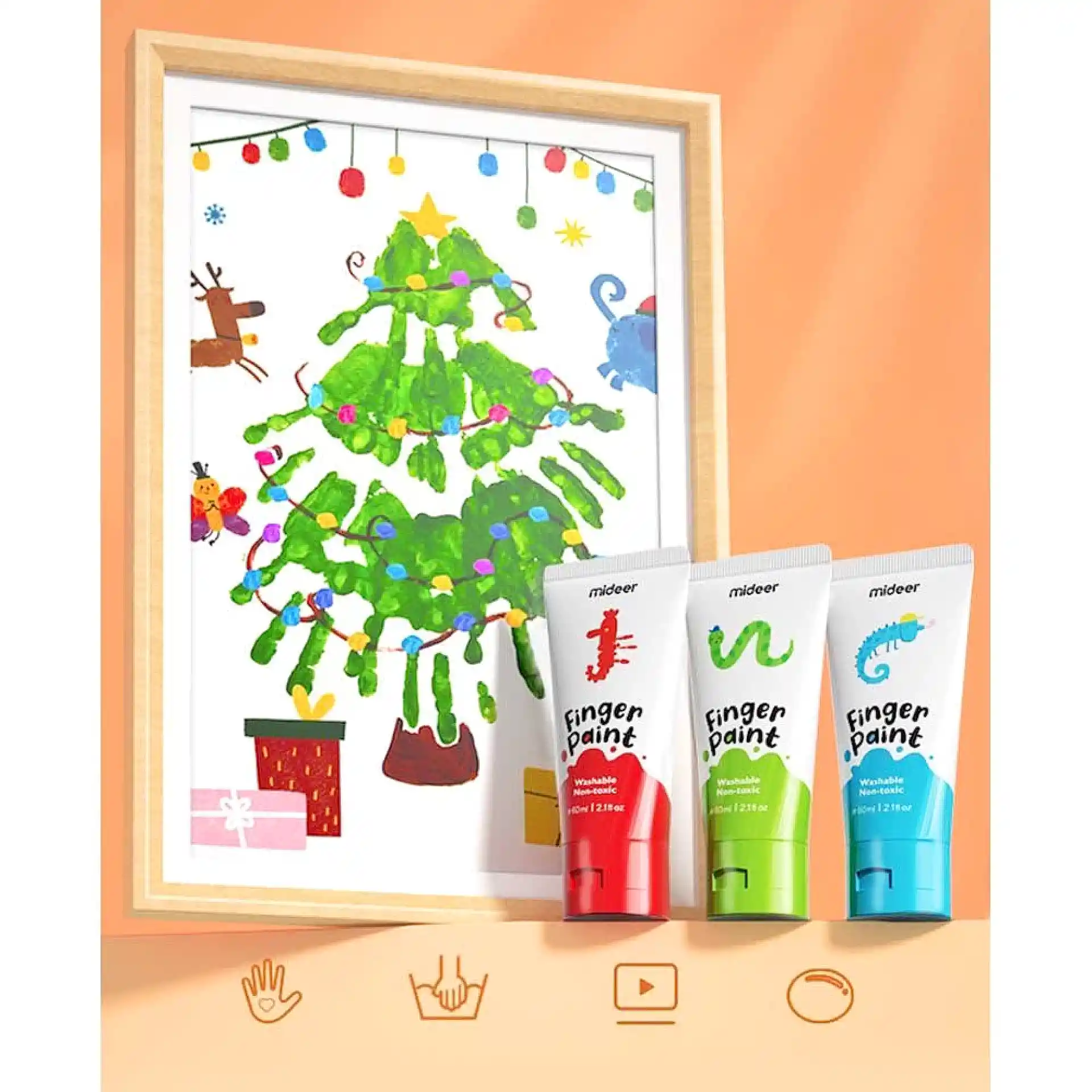 مع ألوان الرسم بالأصابع من Mideer، الطفل بيلعب، بيلمس، وبيبدع بدون فرش — مباشرة بإيديه!