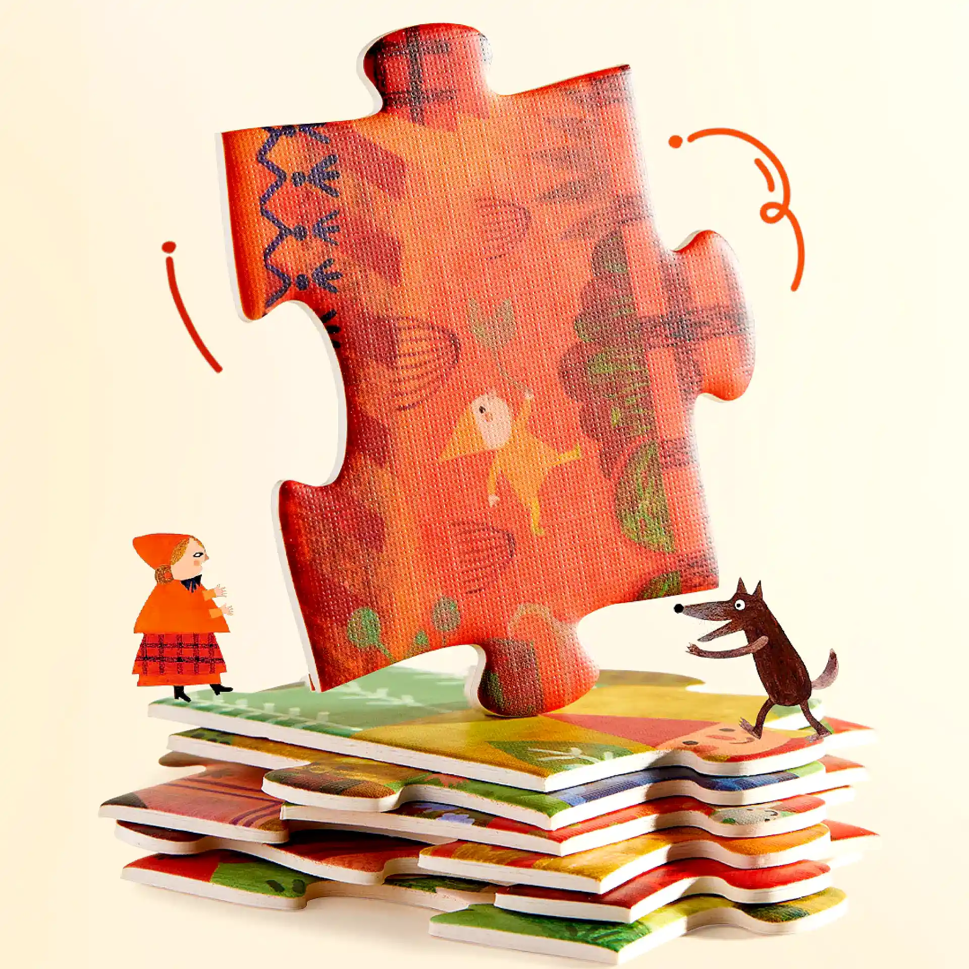 هذا البازل مستوحى من قصة ليلى الحمراء (Little Red Riding Hood)، والطفل فيه بيركّب الصورة وبنفس الوقت يعيش القصة ✨
