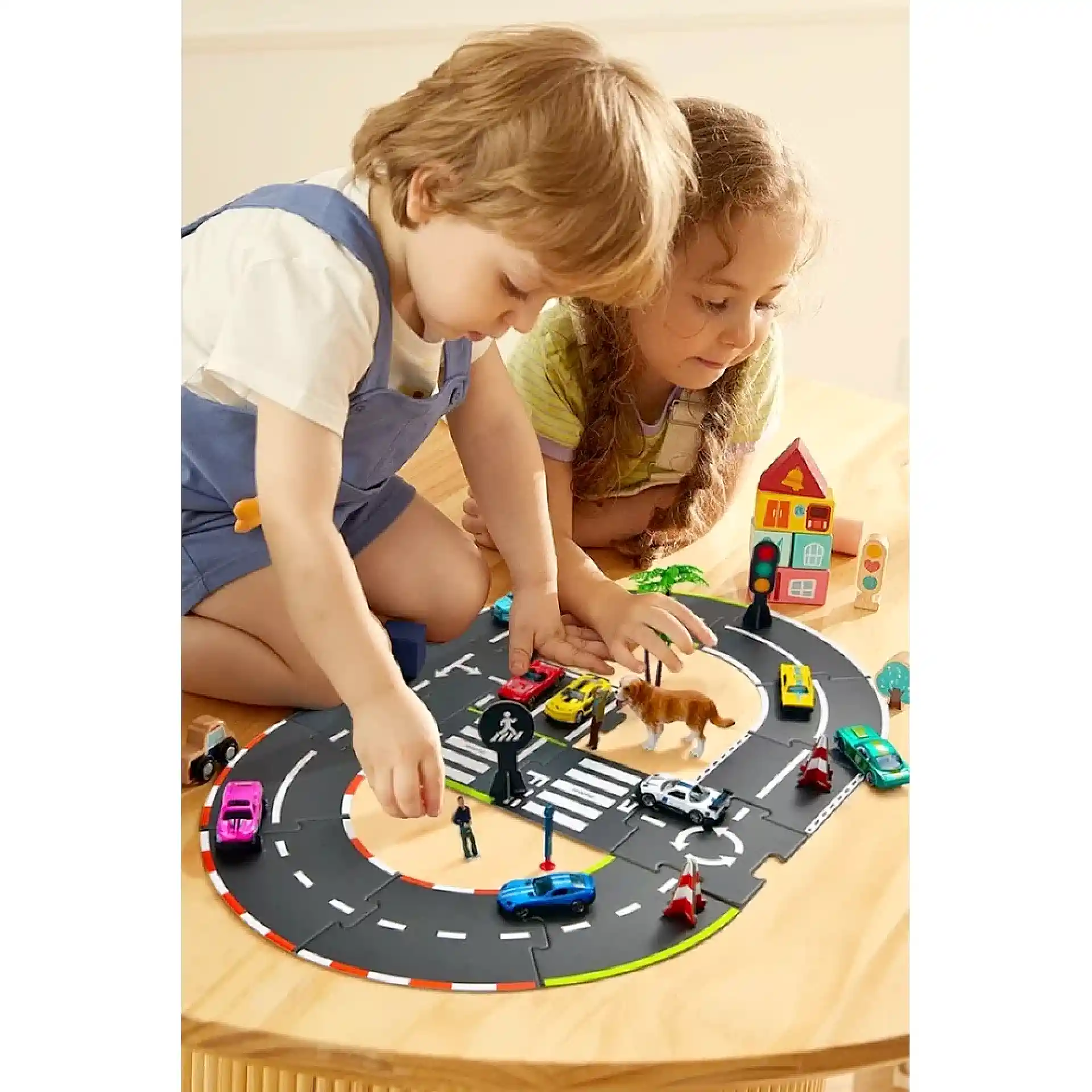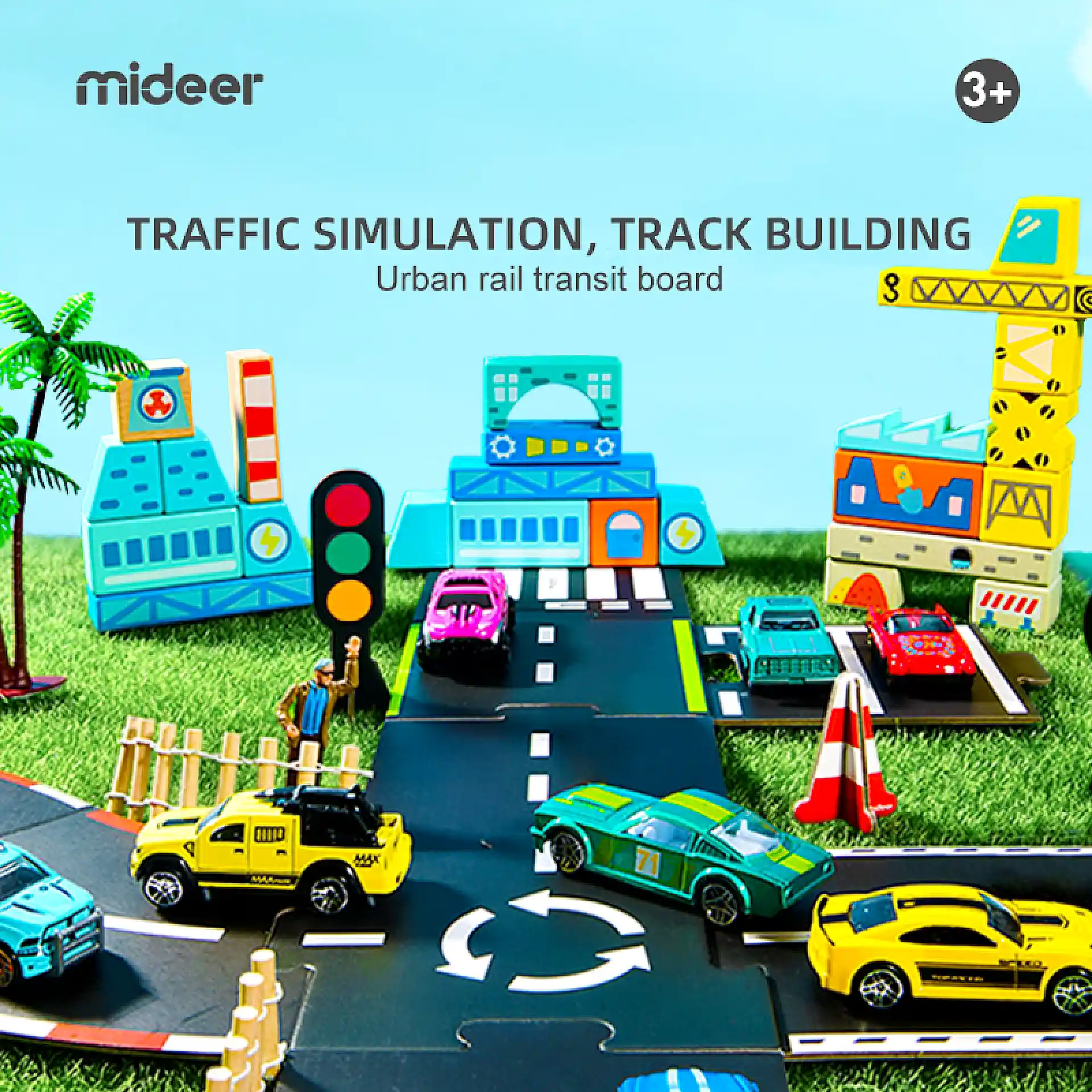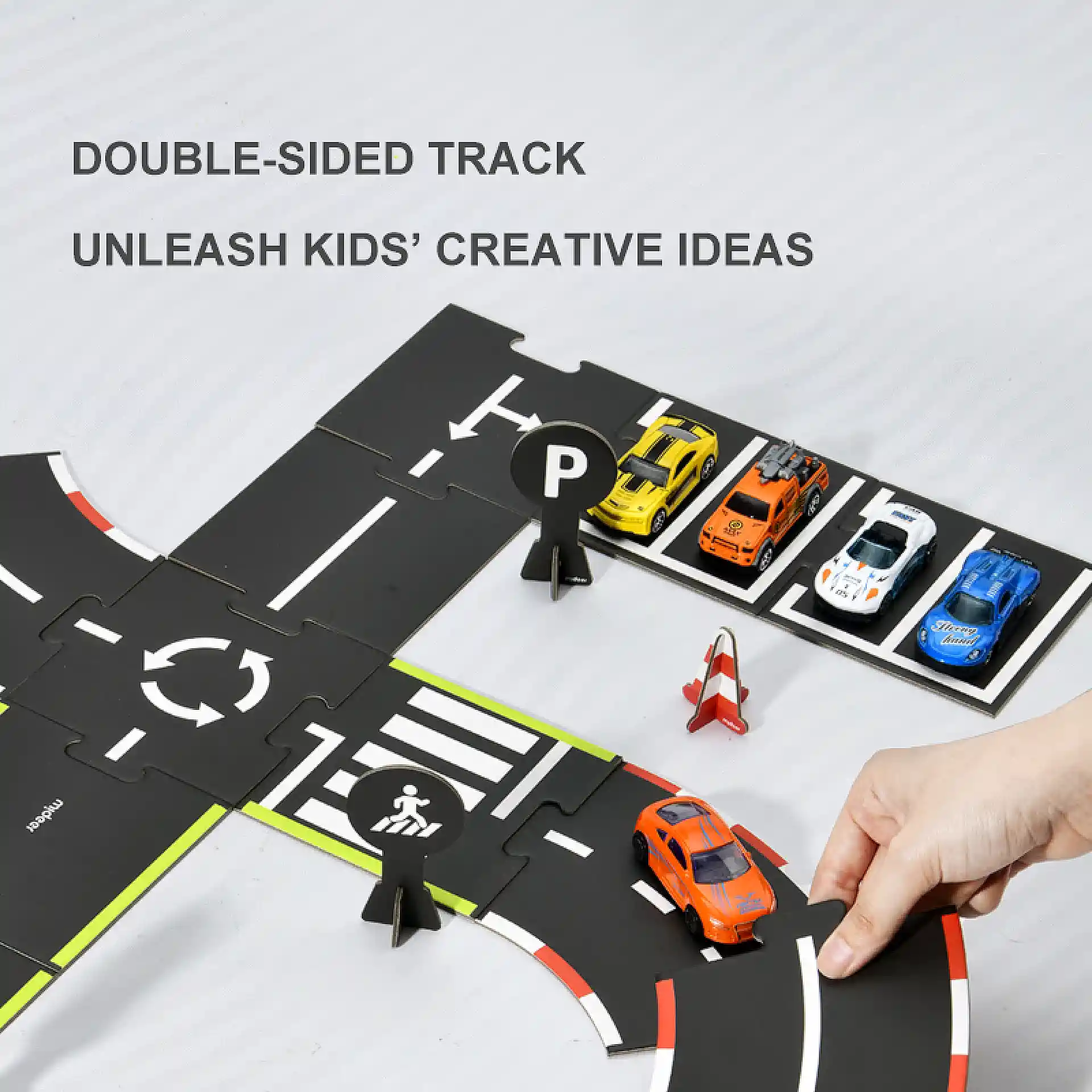 مع بازل مسار السيارات من Mideer، اللعبة بتجمع بين التركيب واللعب الحر — الطفل ببني المسار وبعدين بلعب عليه!