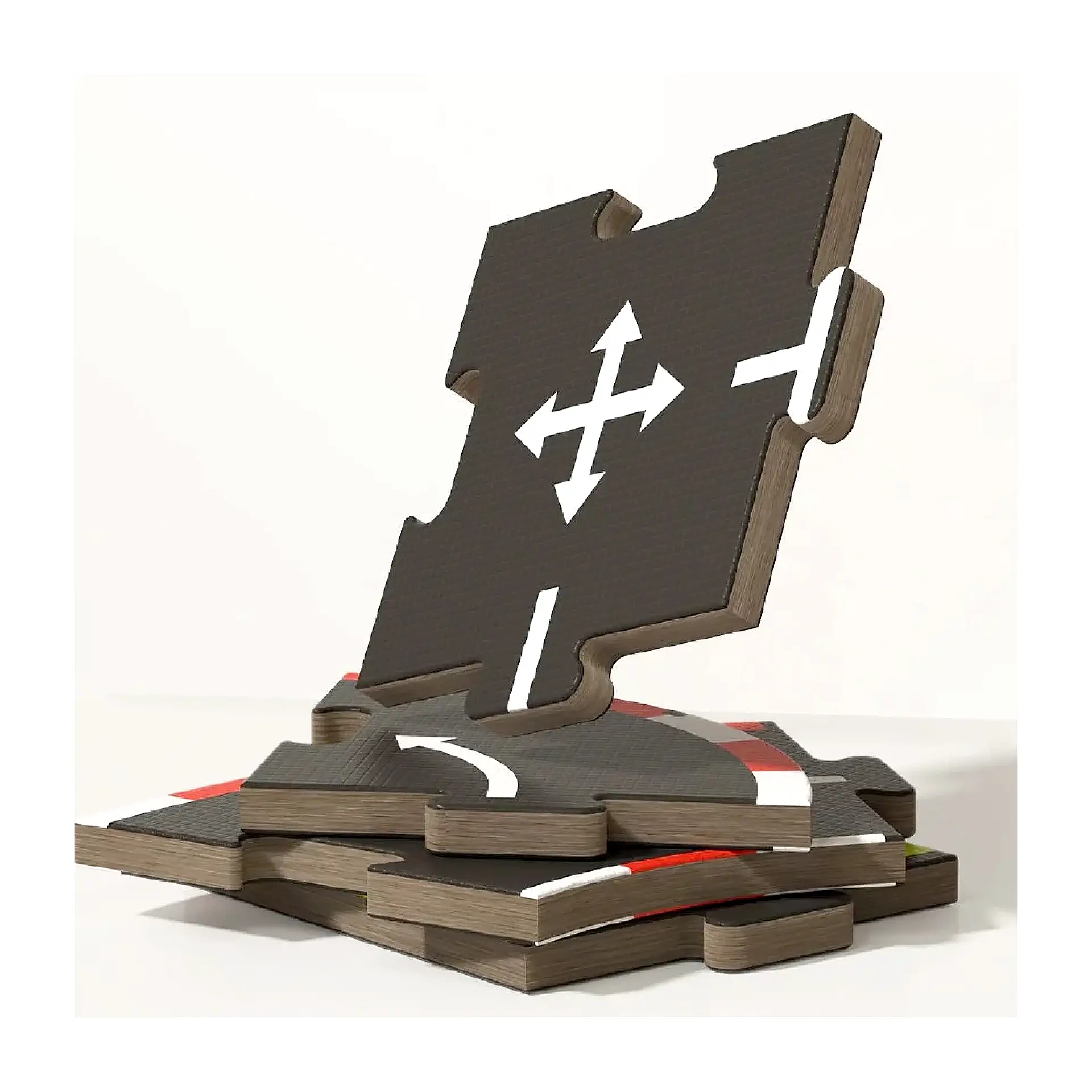 القطع مصممة بشكل طرق ومسارات، والطفل بقدر يركّبها بأشكال مختلفة ويصمّم طريق خاص لسياراته 🚦✨