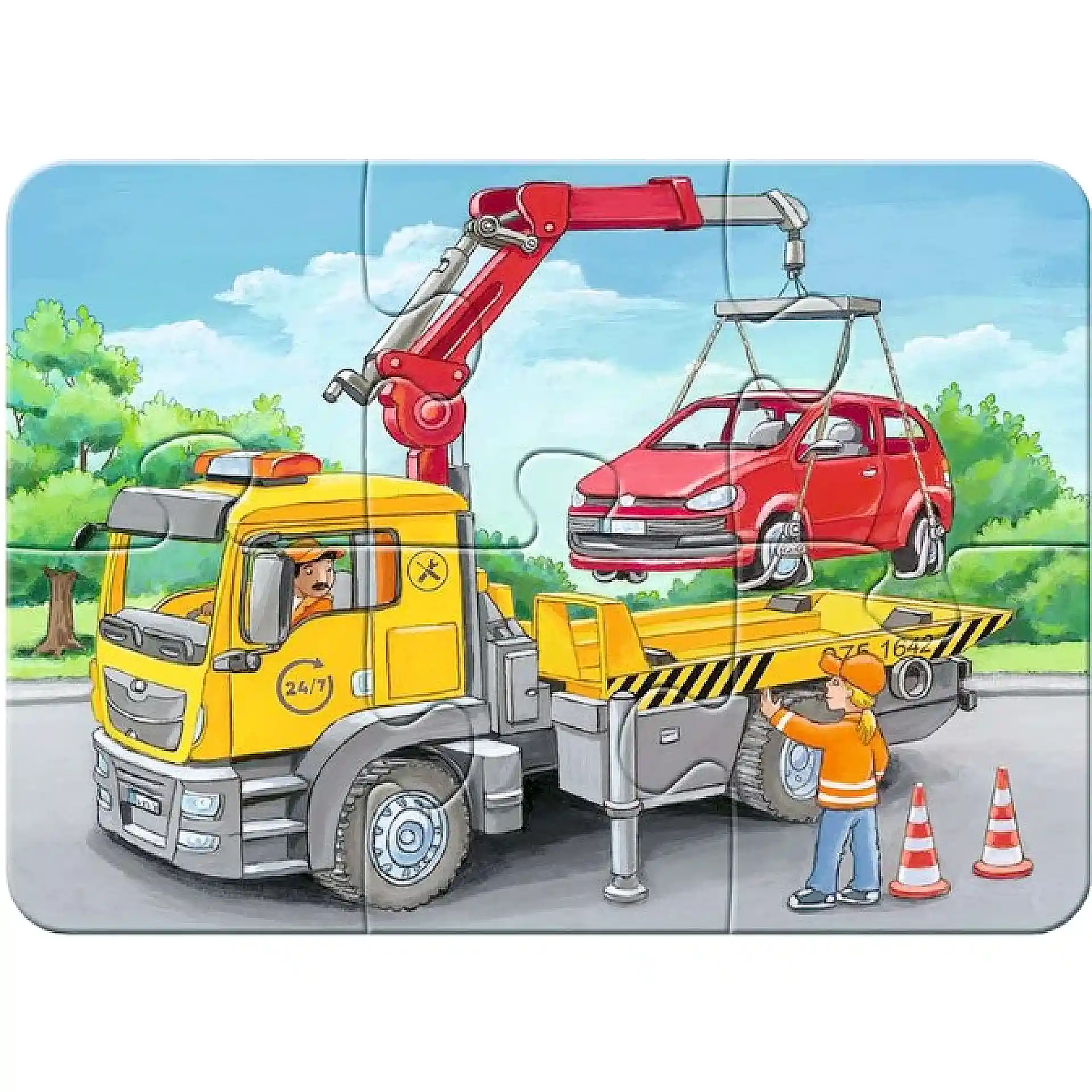 اللعبة بتحتوي على صور واضحة وجذابة لوسائل النقل المختلفة مثل: سيارة 🚗، باص 🚌، قطار 🚆، طيارة ✈️، زورق 🚤، وغيرها – وكلها مصممة بألوان زاهية وقطع كبيرة وآمنة مناسبة للأيدي الصغيرة.