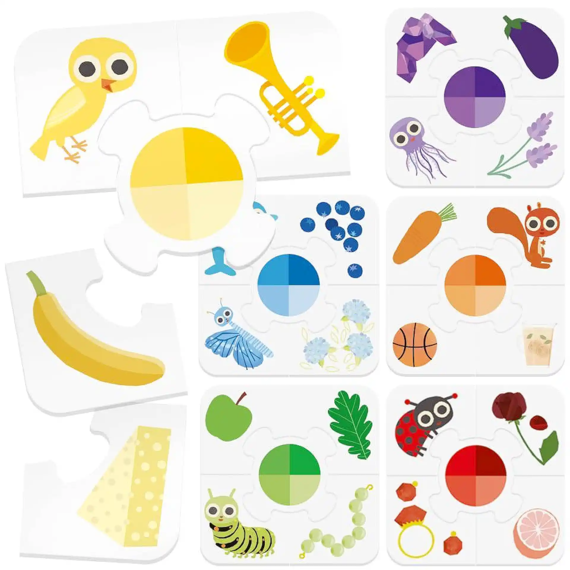 اللعبة تساعد الطفل على تصنيف العناصر حسب اللون وربط الألوان بأشياء من الواقع
