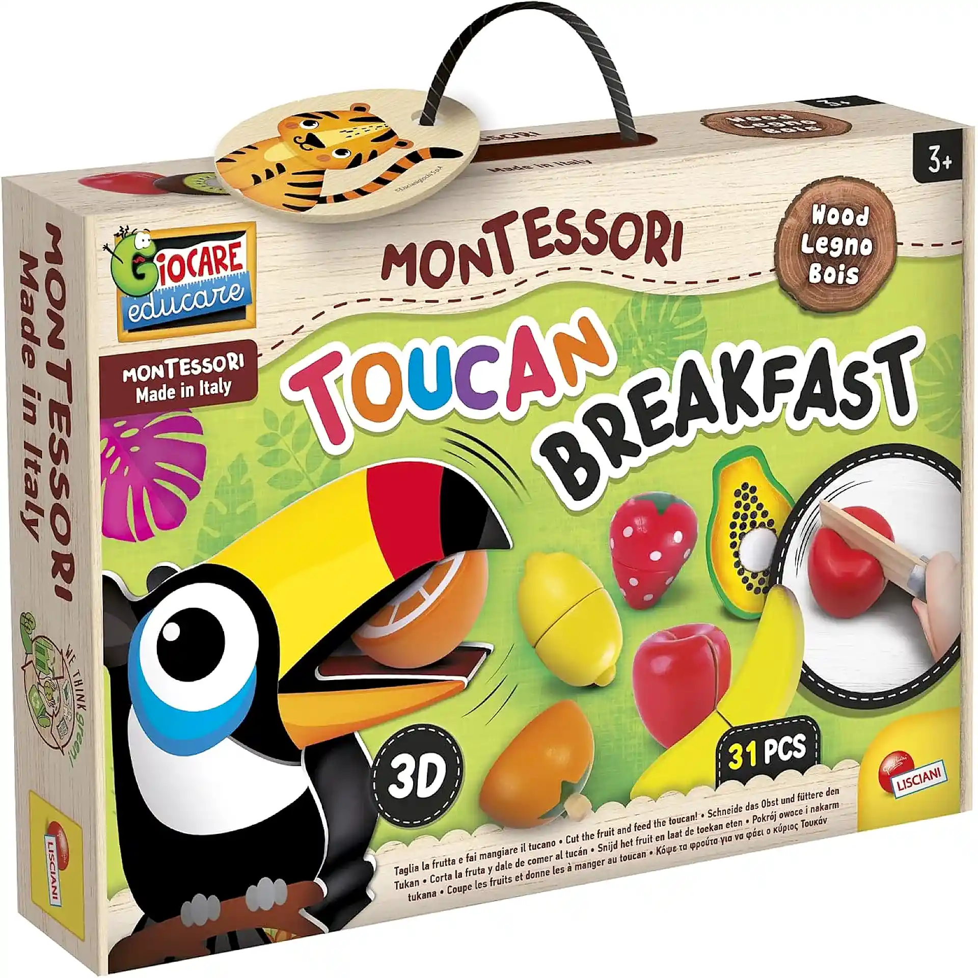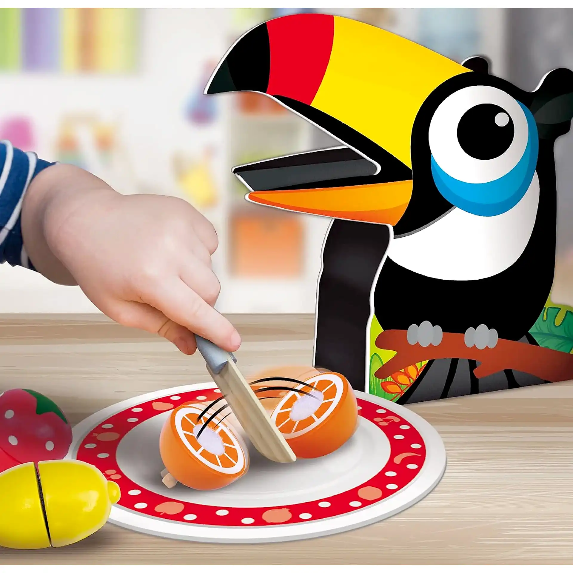 لعبة Toucan Breakfast تتيح للطفل تقطيع الفواكه ثم إطعام الطوقان بطريقة ممتعة وتفاعلية.