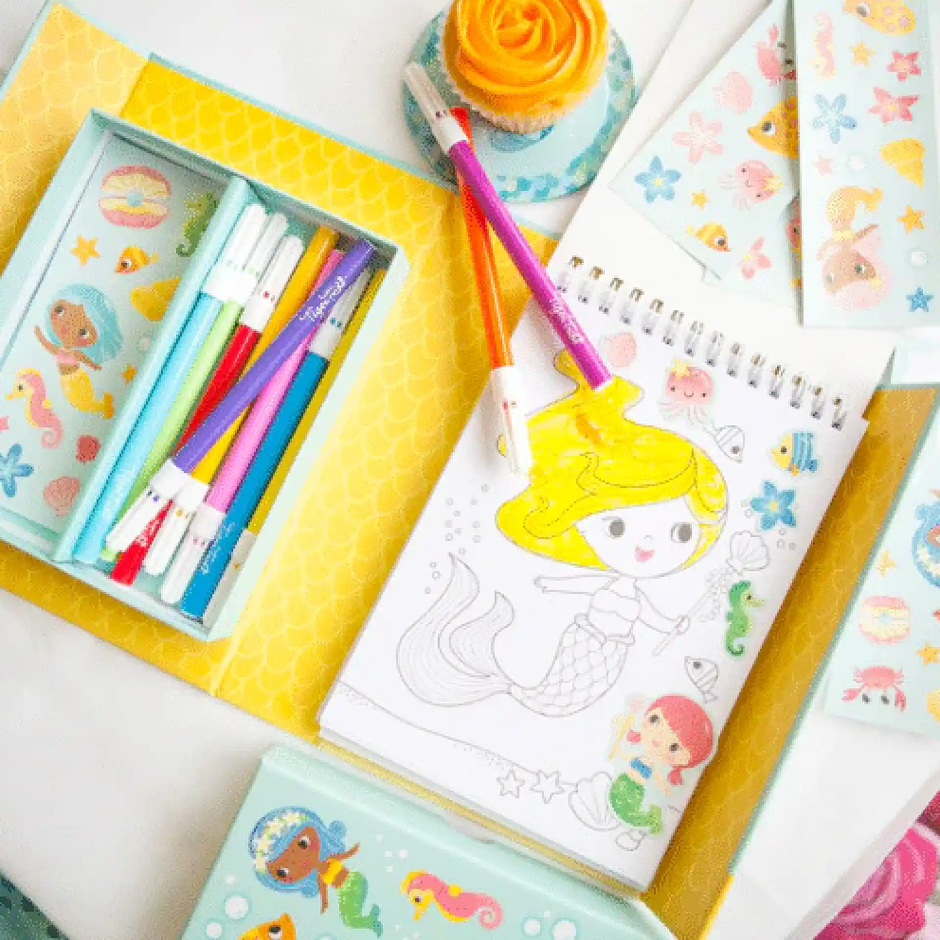 مجموعة تلوين مليانة رسومات حوريات البحر، الطفل يلوّن ويصمّم بطريقته الخاصة ✨