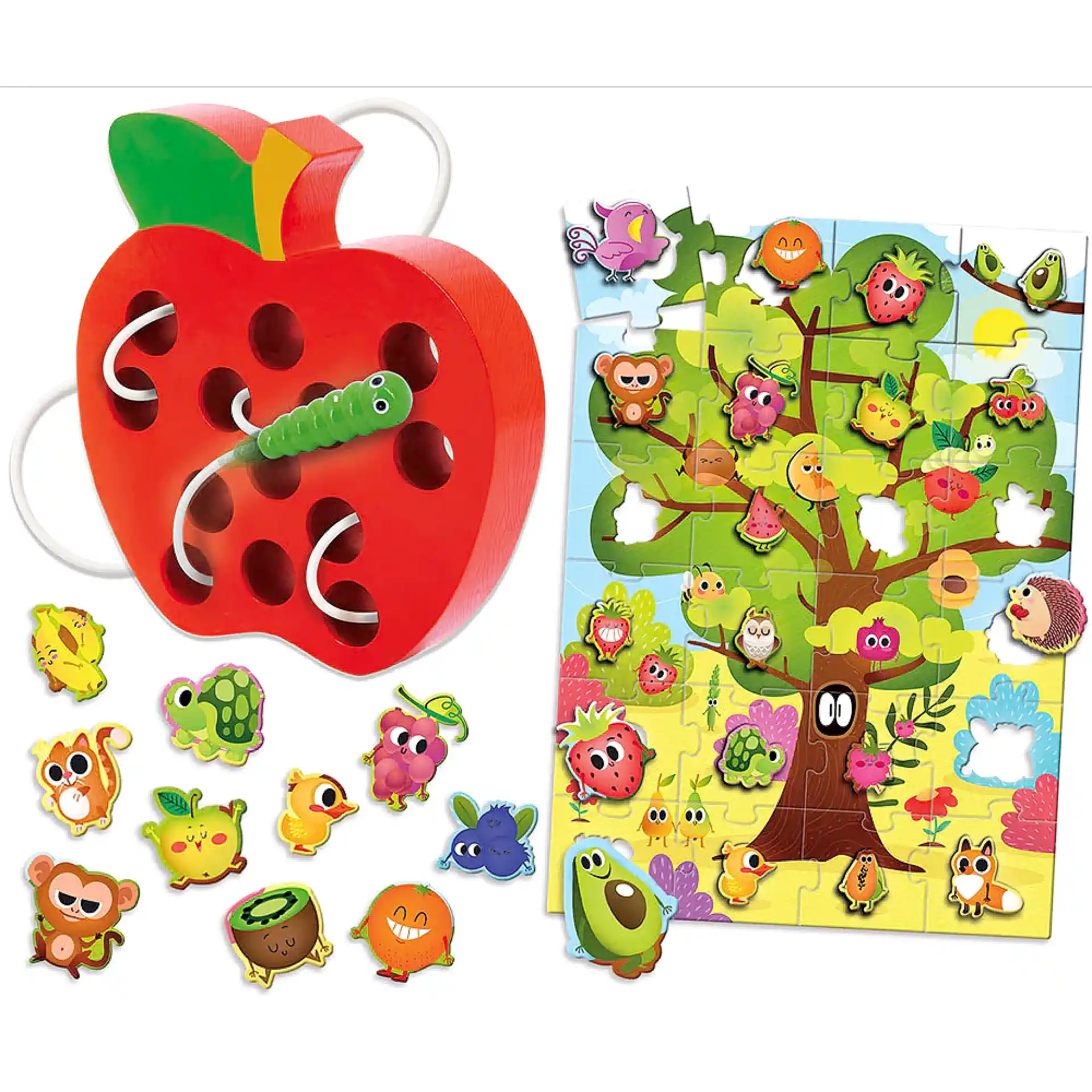 لعبة الدودة داخل الفواكه – تمرير وتعلّم | مونتيسوري خشبي | Lisciani