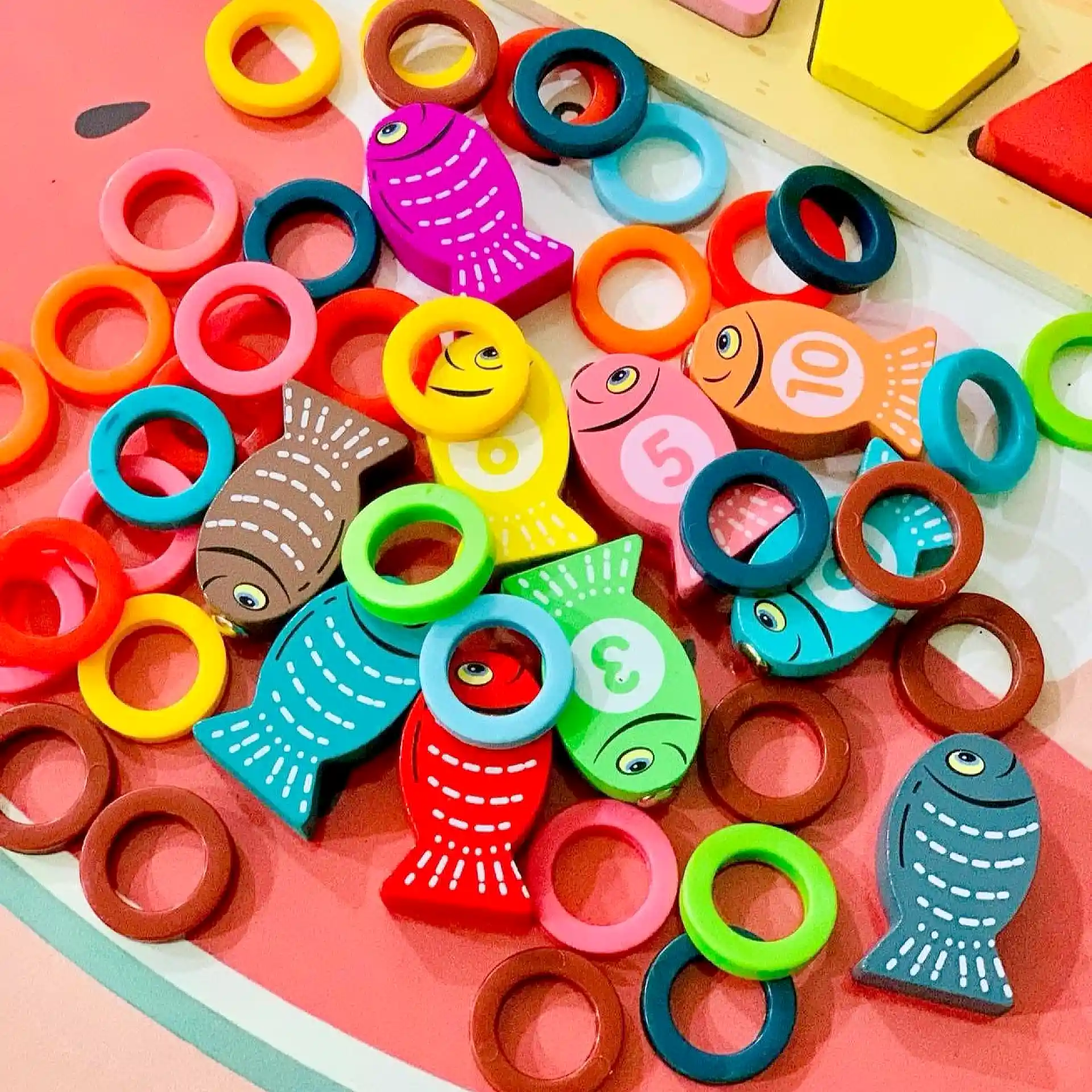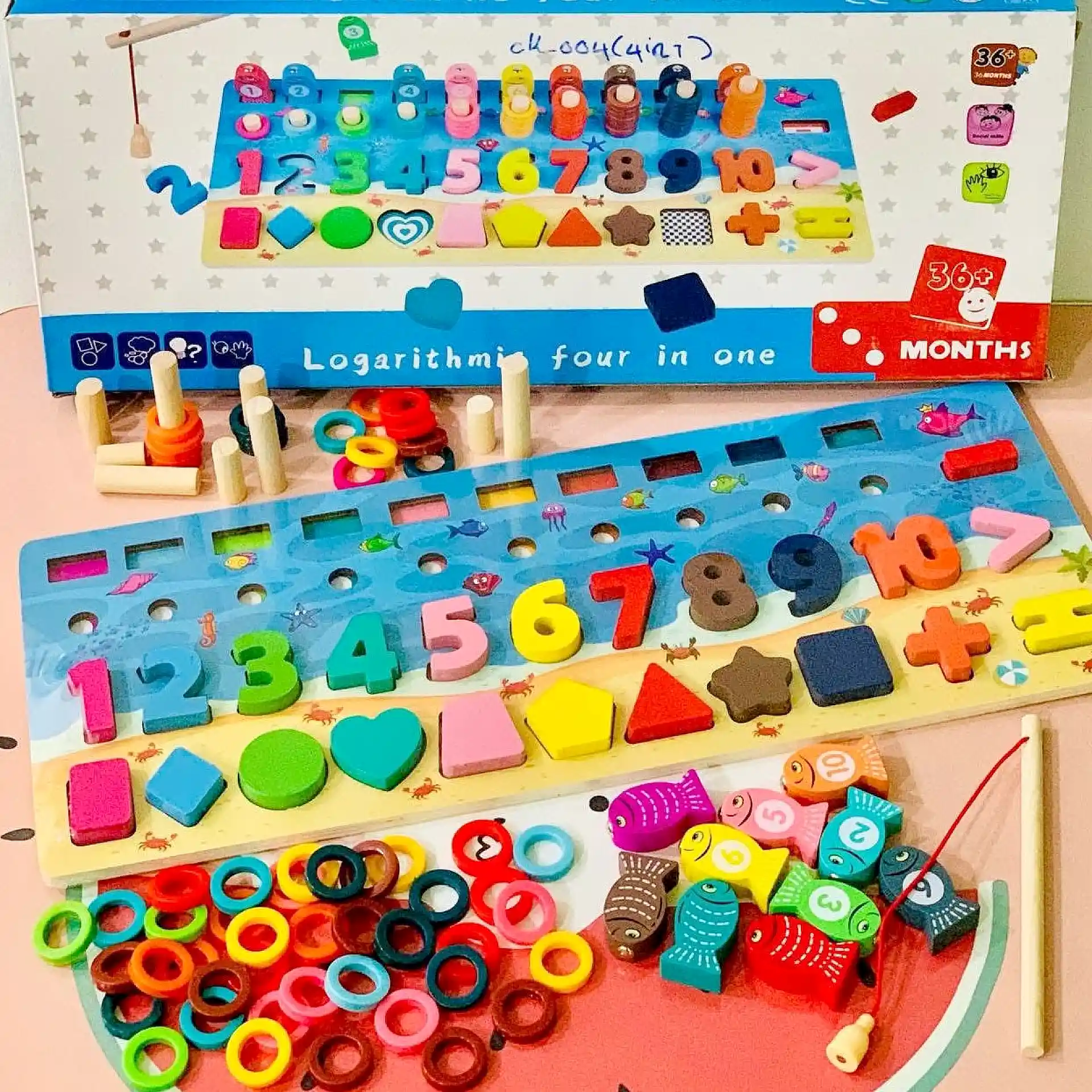 لعبة صيد السمك التعليمية 4 في 1 – أرقام وأشكال وتركيب | خشب