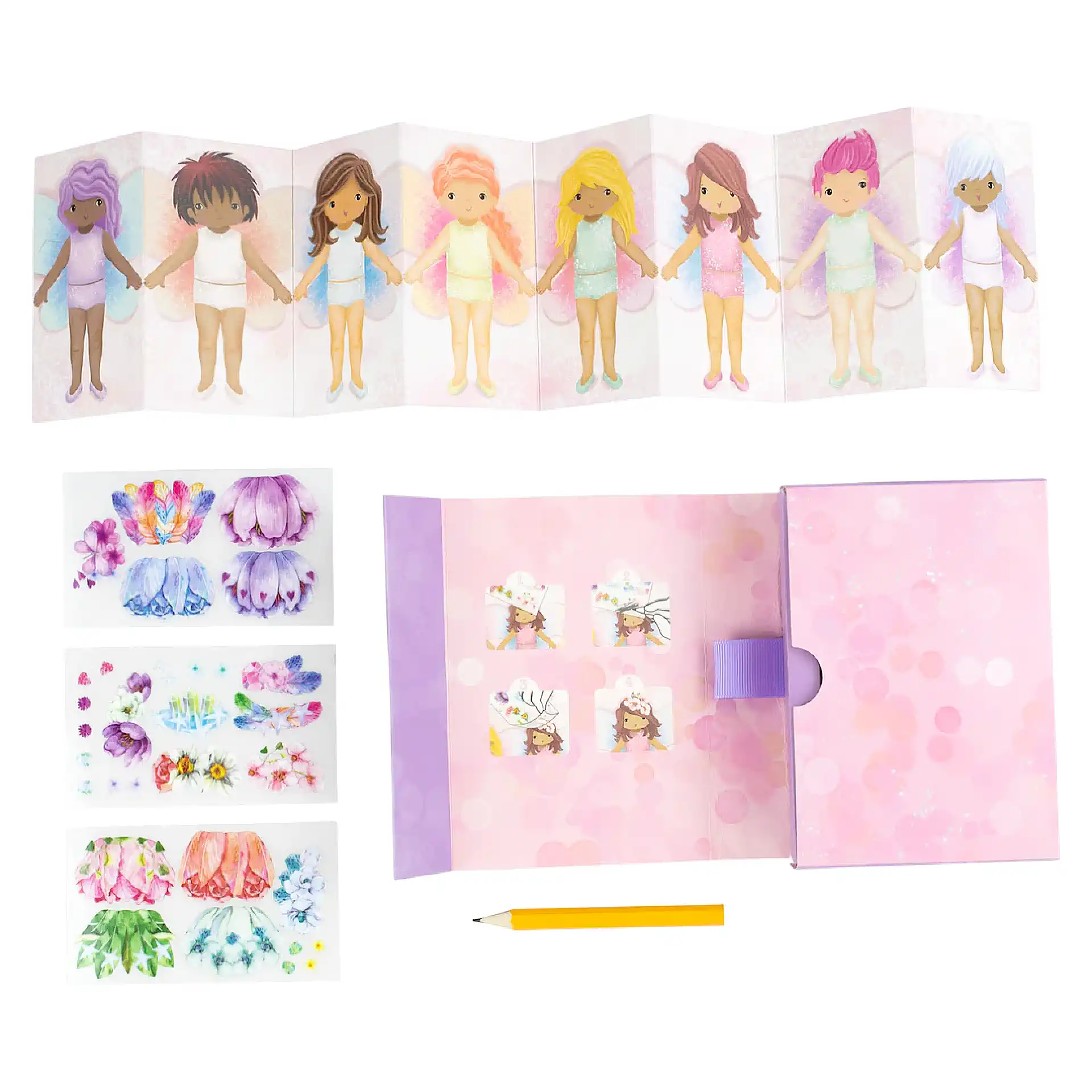 يعني الطفل بيصمّم شخصيات الجنيات بنفسه — يركّب أجنحة، ملابس وزينة حسب خياله.