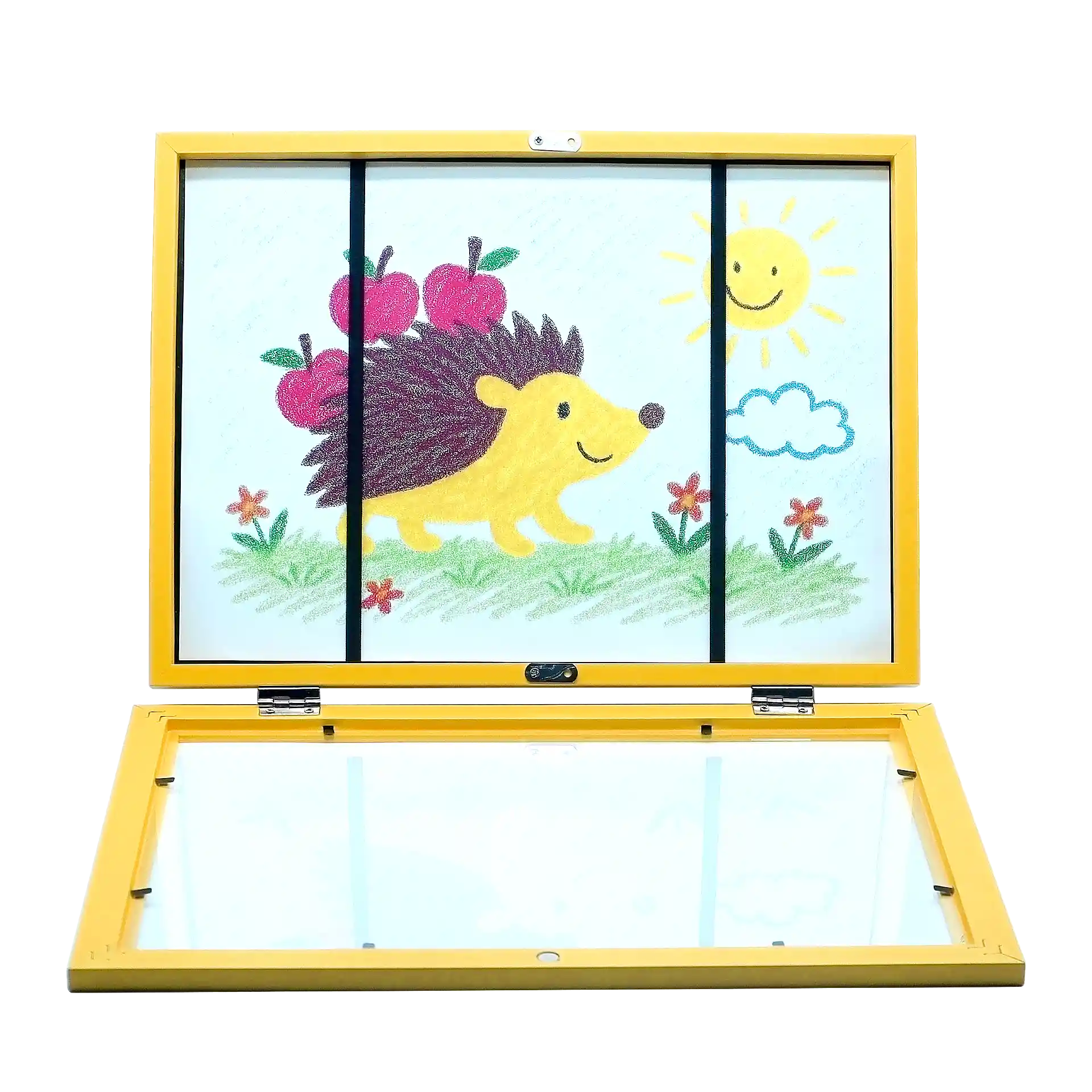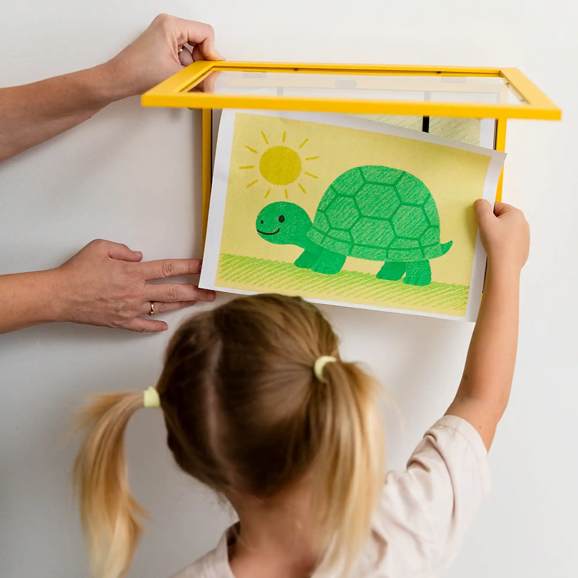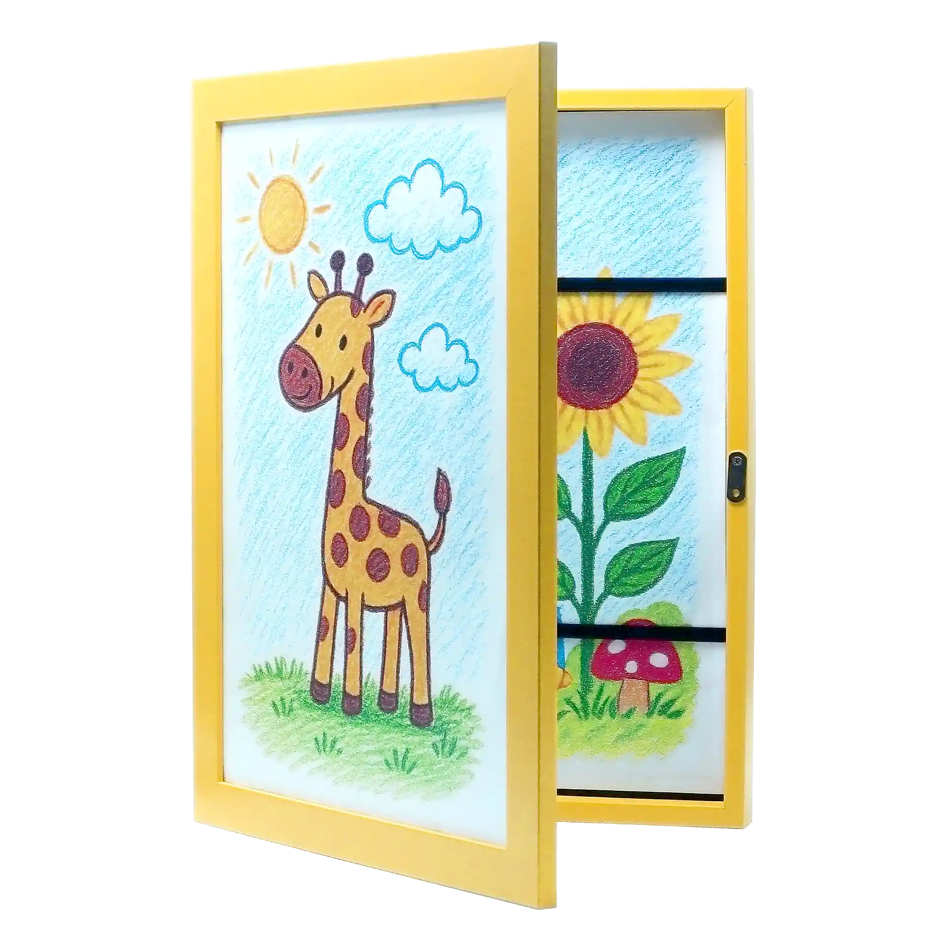 هذا الإطار الذكي يتيح لكِ حفظ رسومات الطفل بشكل مرتب وأنيق، مع إمكانية عرض أجمل لوحة في الواجهة وتبديلها بسهولة خلال ثوانٍ.