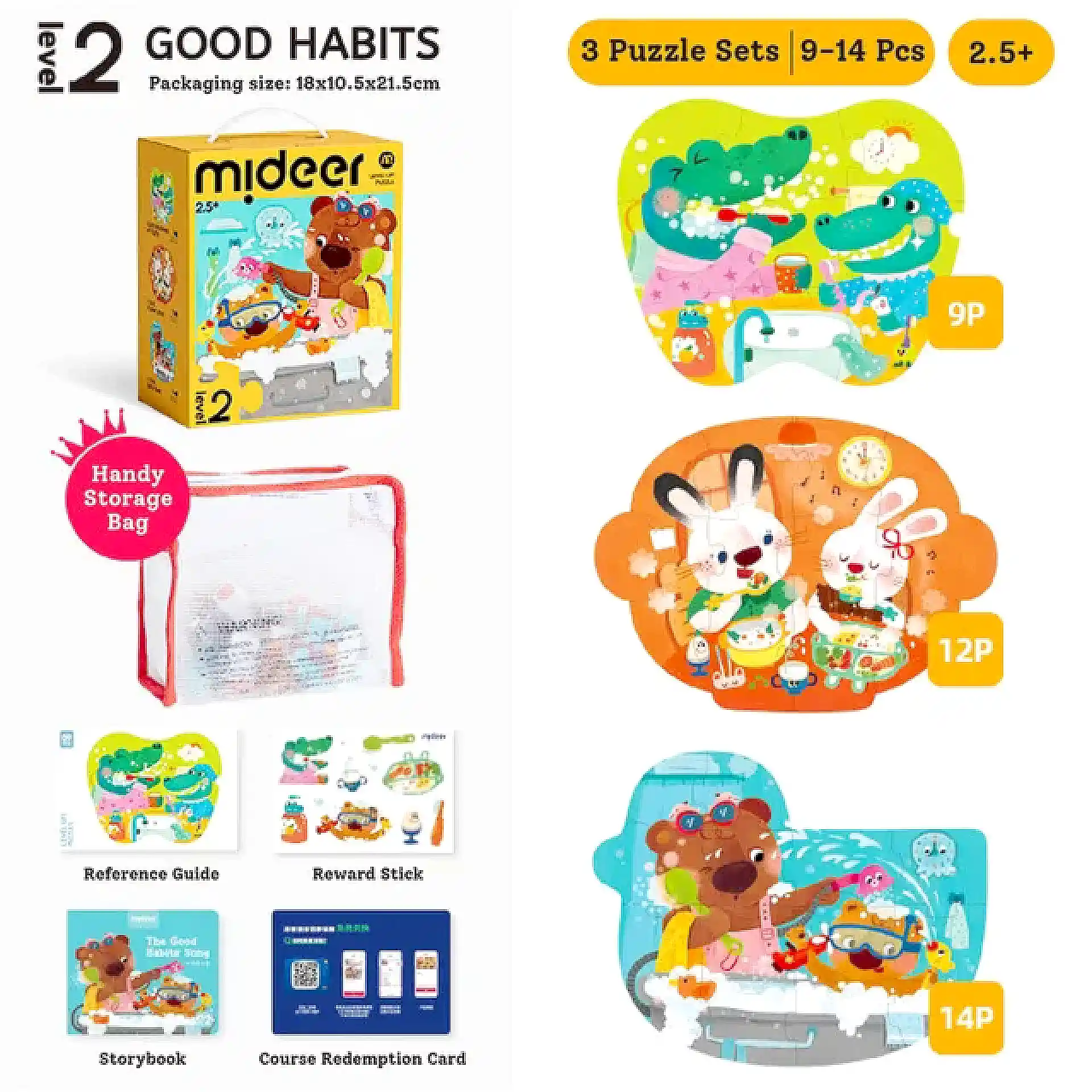 פאזל מדורג 3 ב-1 – הרגלים יומיומיים (רמה 2) | Mideer