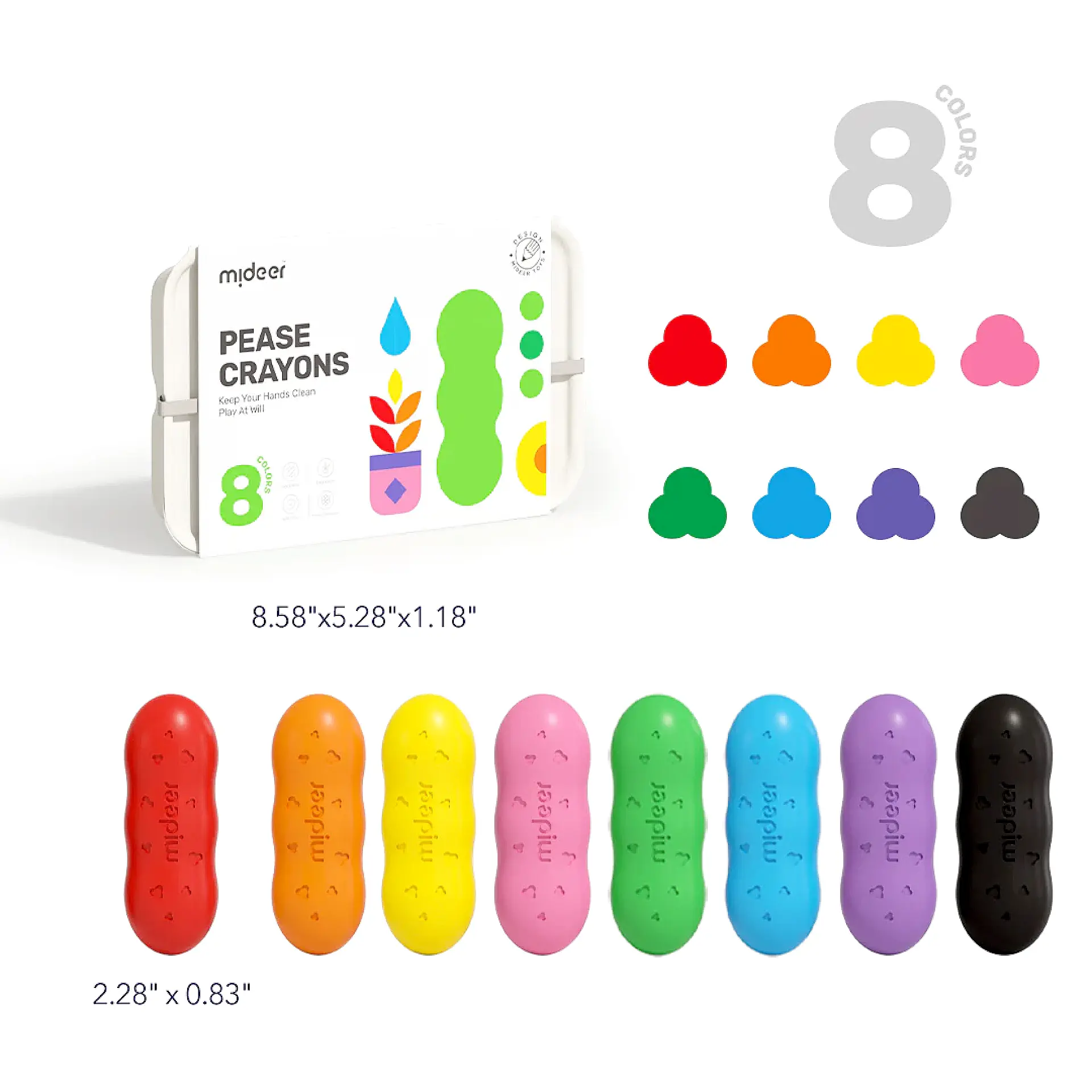צבעי שעווה בצורת אפונה – 8 צבעים | Mideer
