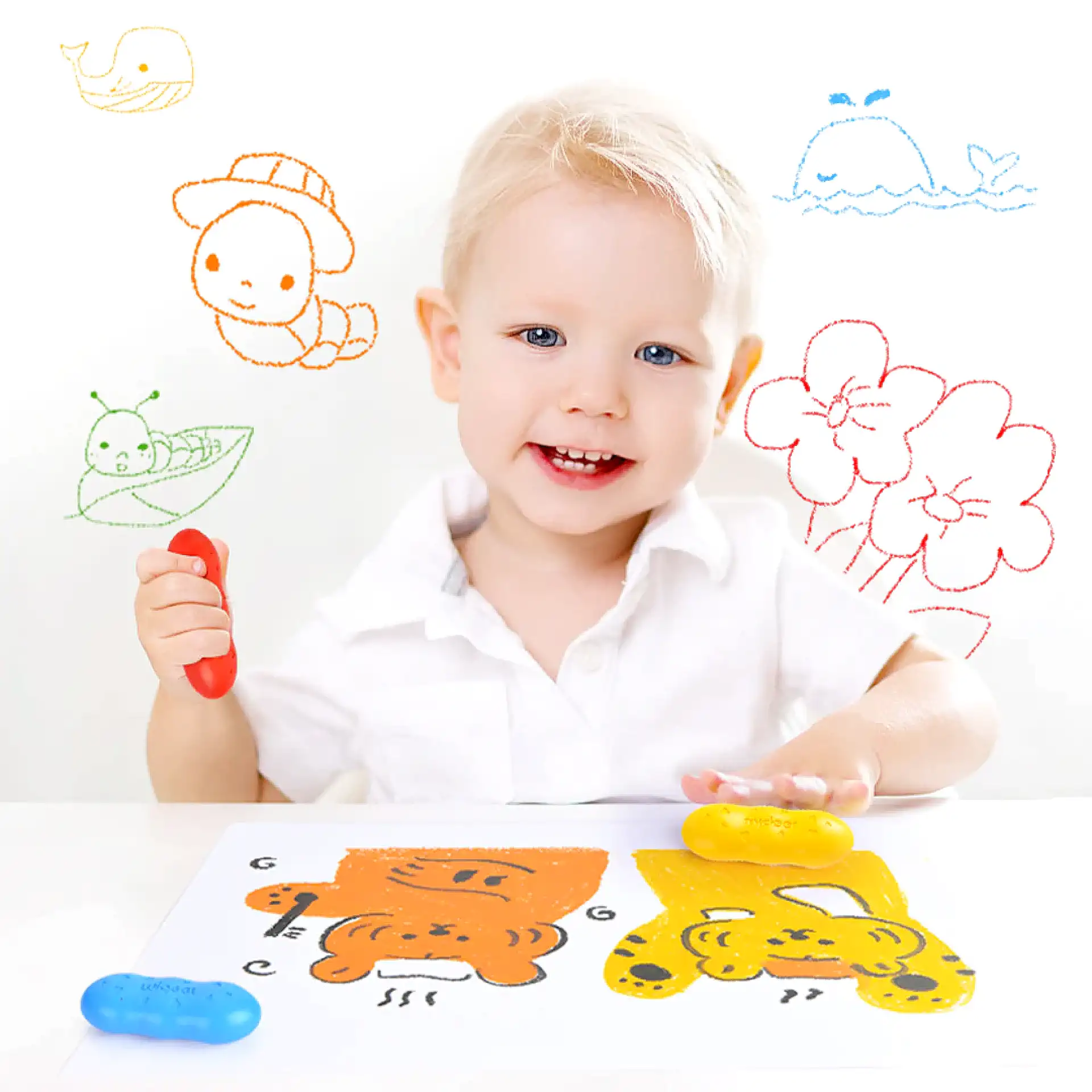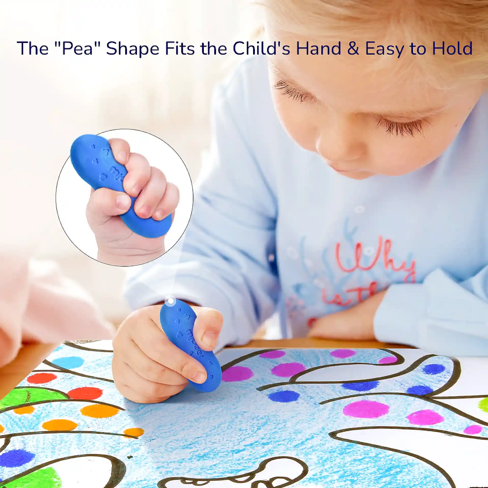 הצבעים מעוצבים בצורת “אפונה”, מה שמקל על אחיזה בידיים קטנות ✨