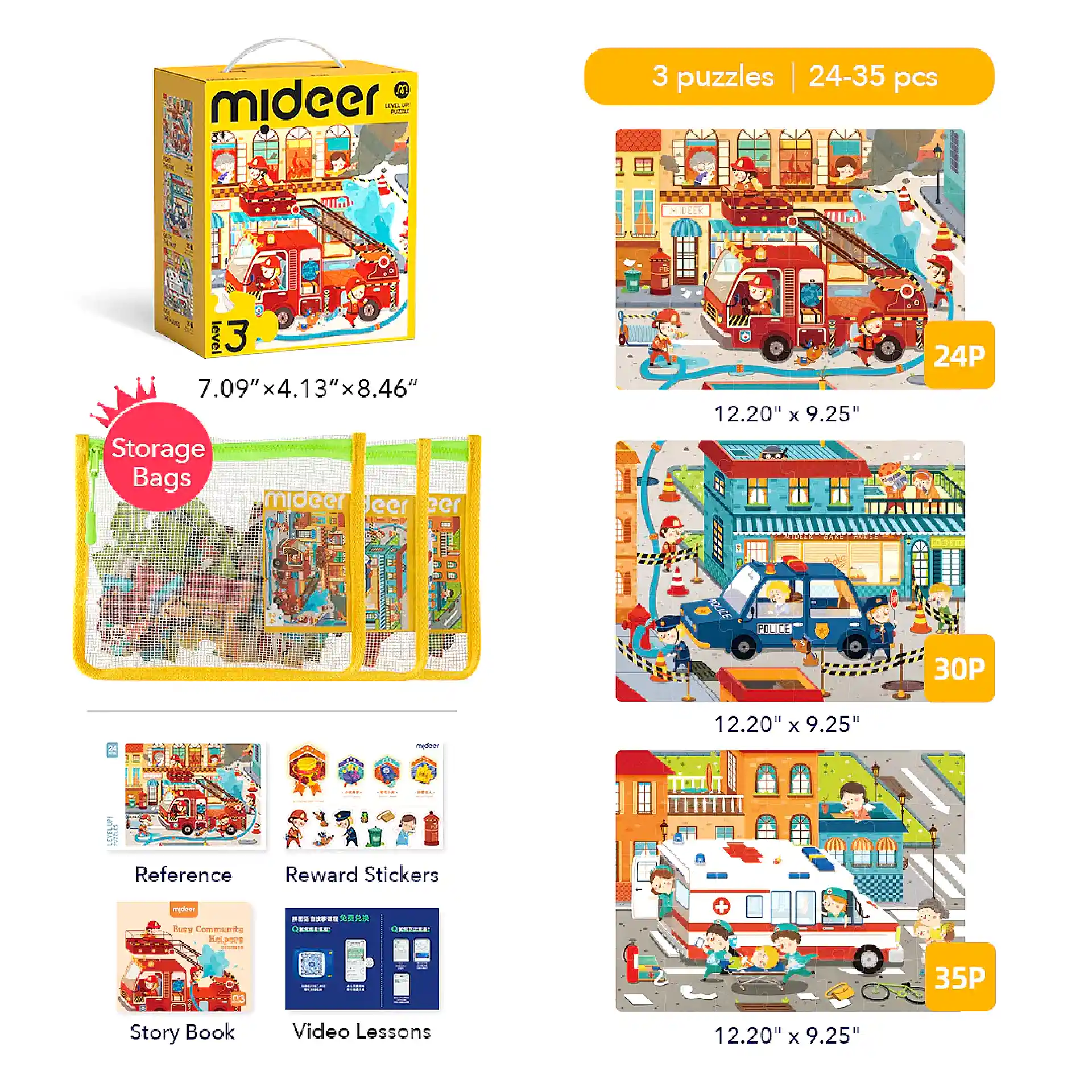 סט פאזלים מדורגים – רמה 3 (אנשי הקהילה) | Mideer