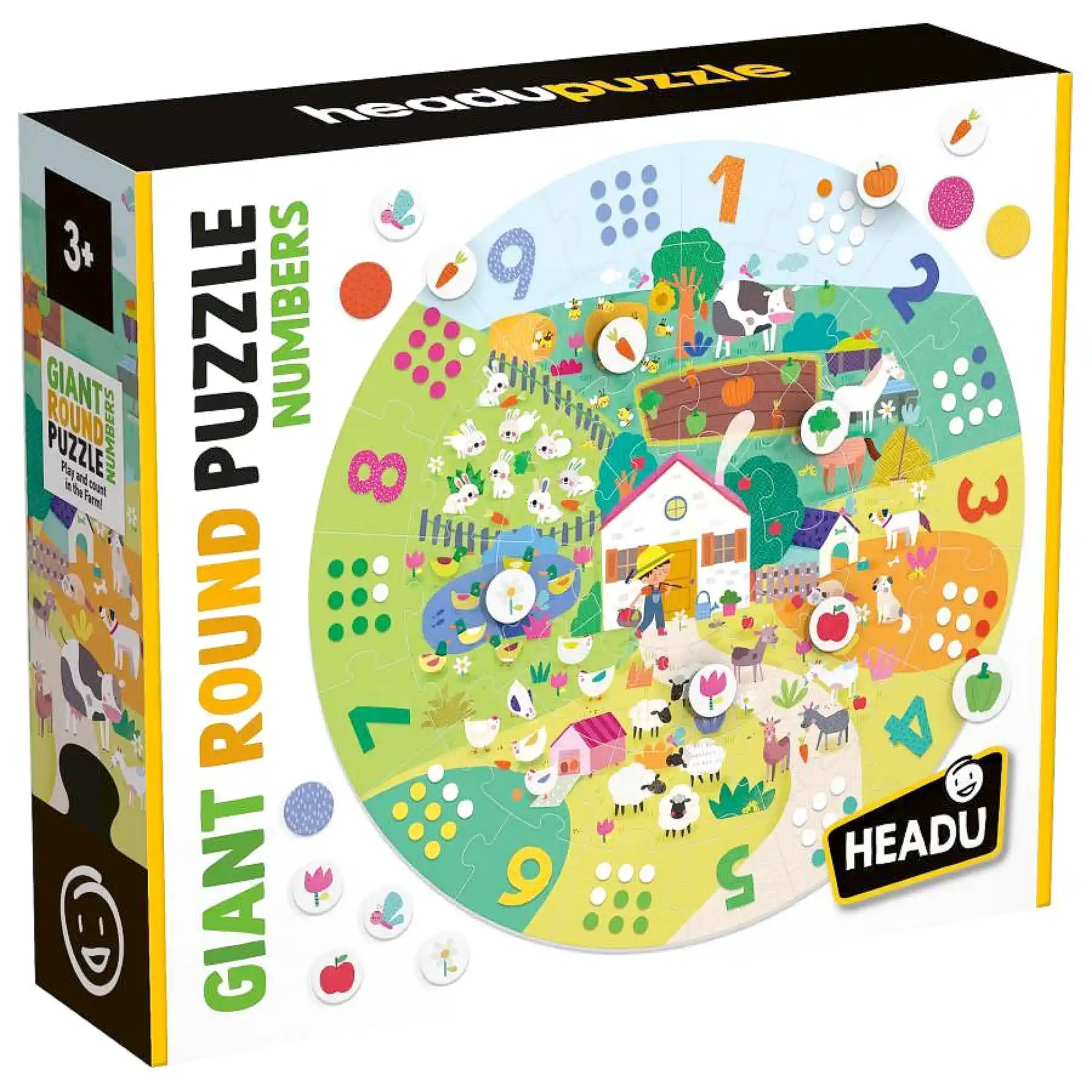 פאזל מספרים וכמויות – Headu הוא פאזל עגול גדול עם עולם של חווה 🐄🌾