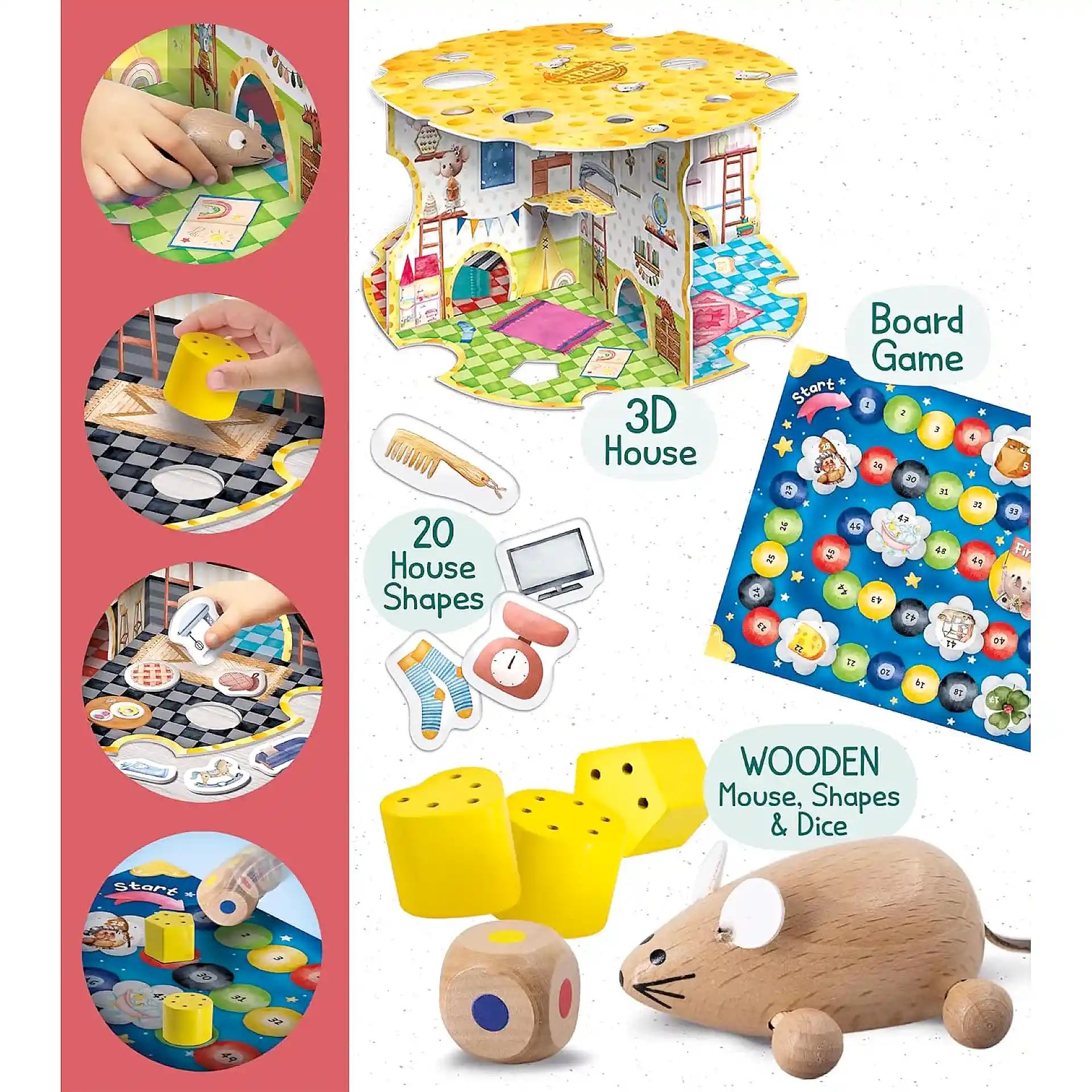 משחק The Mouse House מבית Lisciani הוא ערכת משחקים חינוכית סביב בית העכבר, שבה הילדים משתמשים בקובייה וממיינים פריטים לפי צבעים וחדרים.