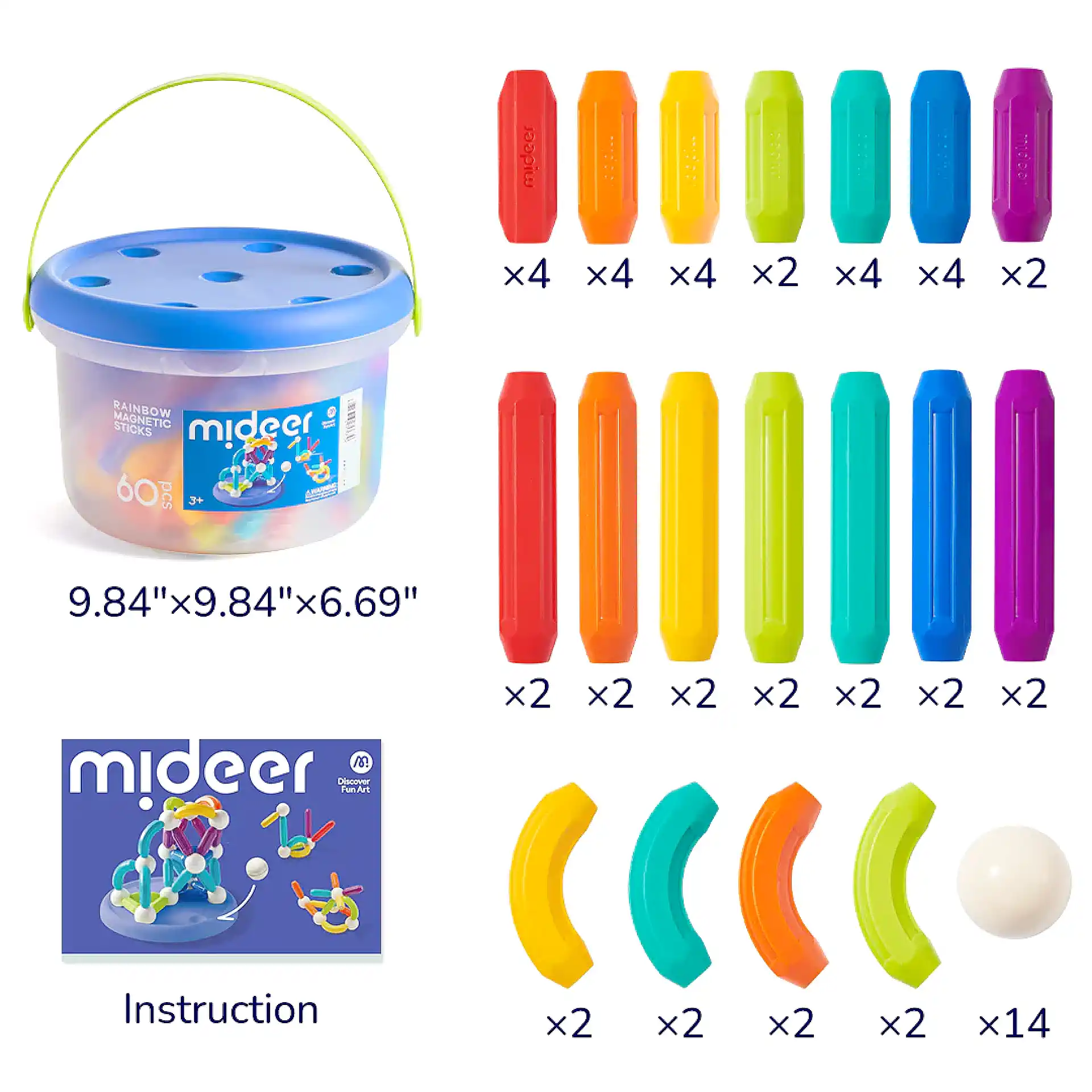 מקלות בנייה מגנטיים צבעוניים – 60 חלקים | Mideer