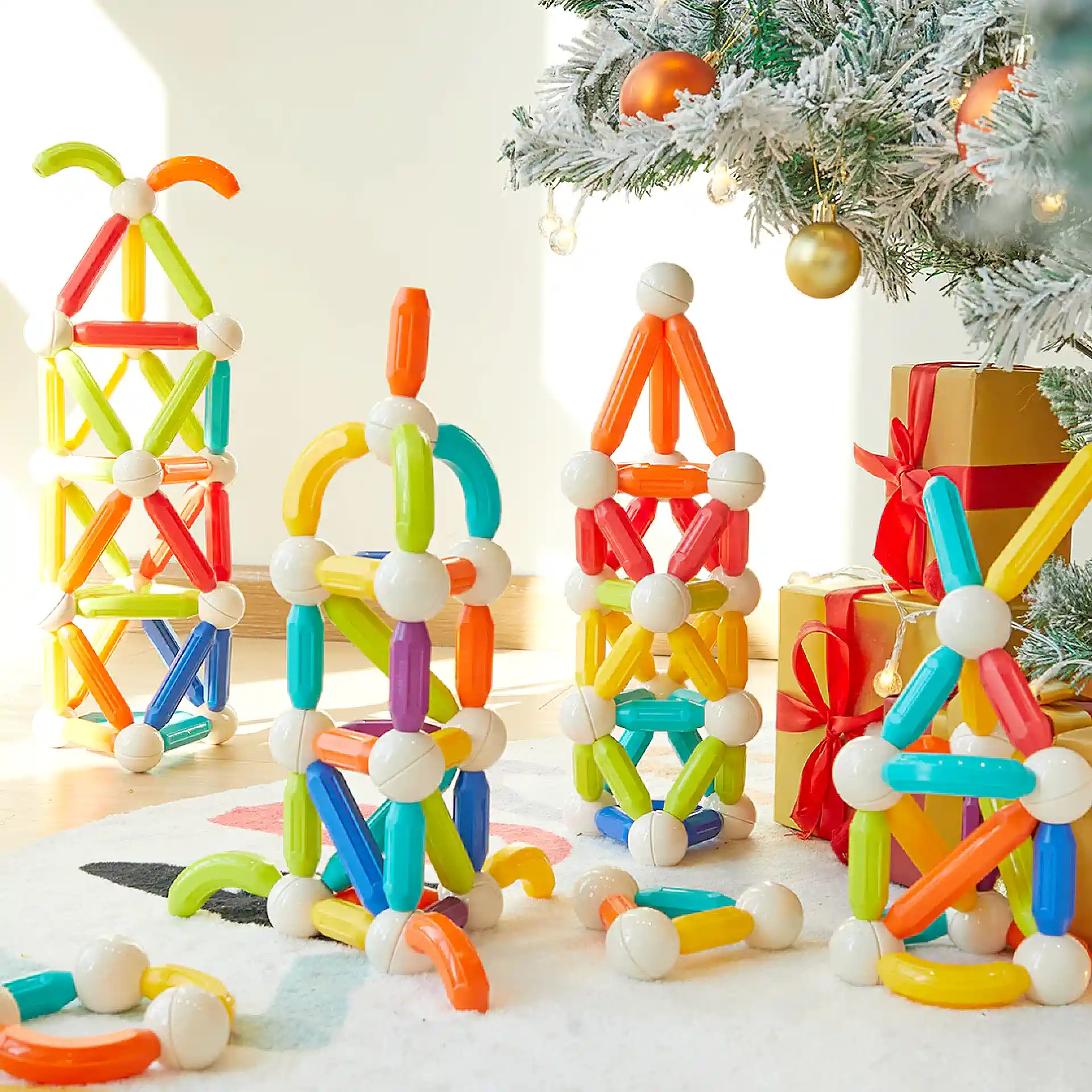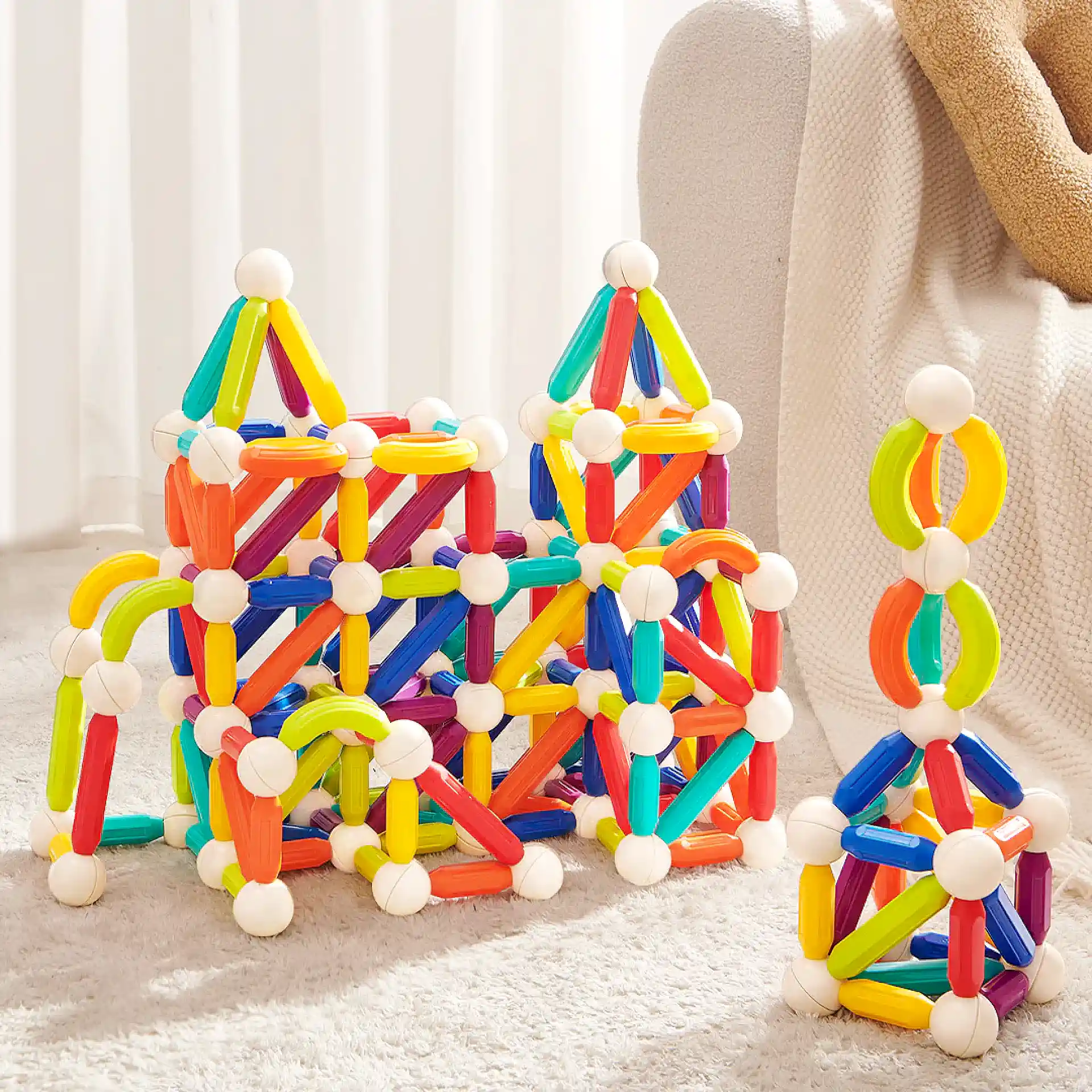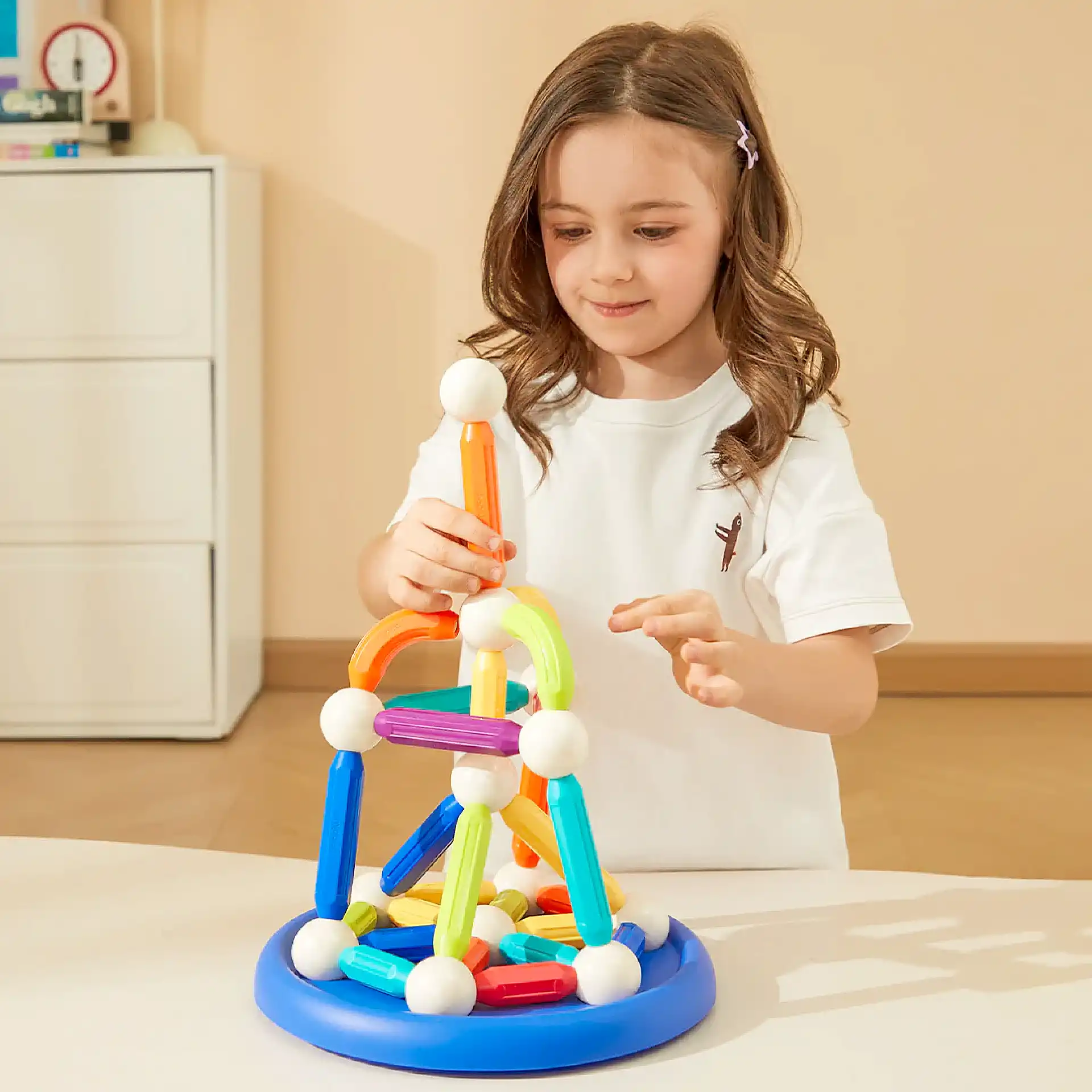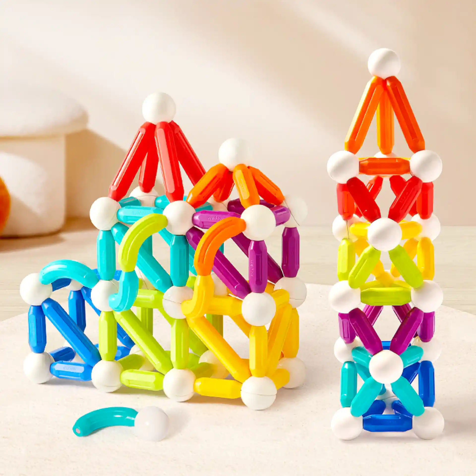 זהו סט מקלות וחרוזים מגנטיים המאפשרים לילד לבנות צורות ומבנים שונים ✨