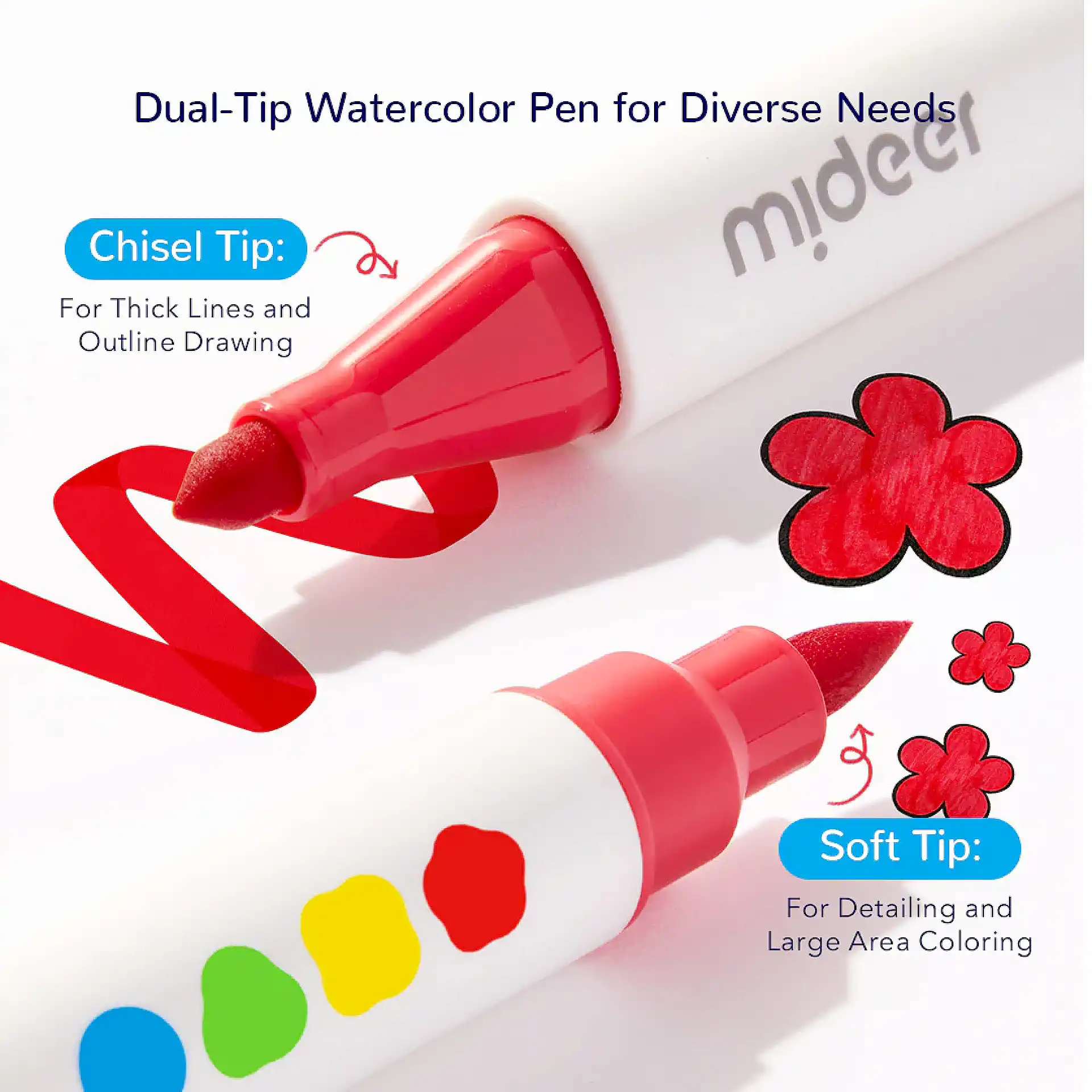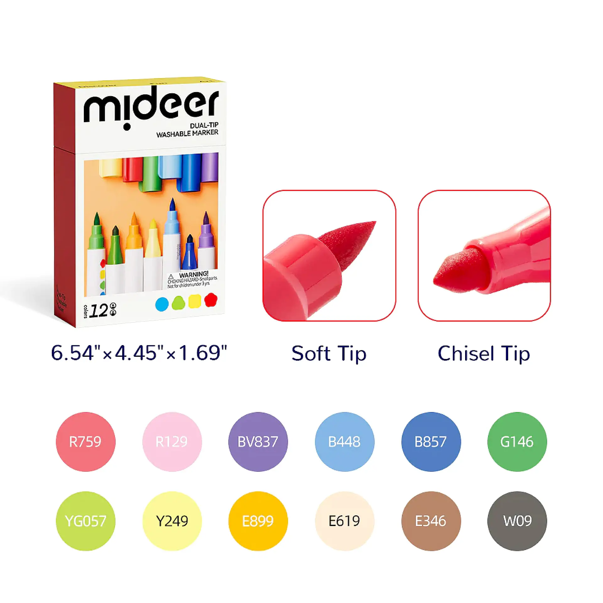 טושים דו-צדדיים רחיצים 12 צבעים – Mideer